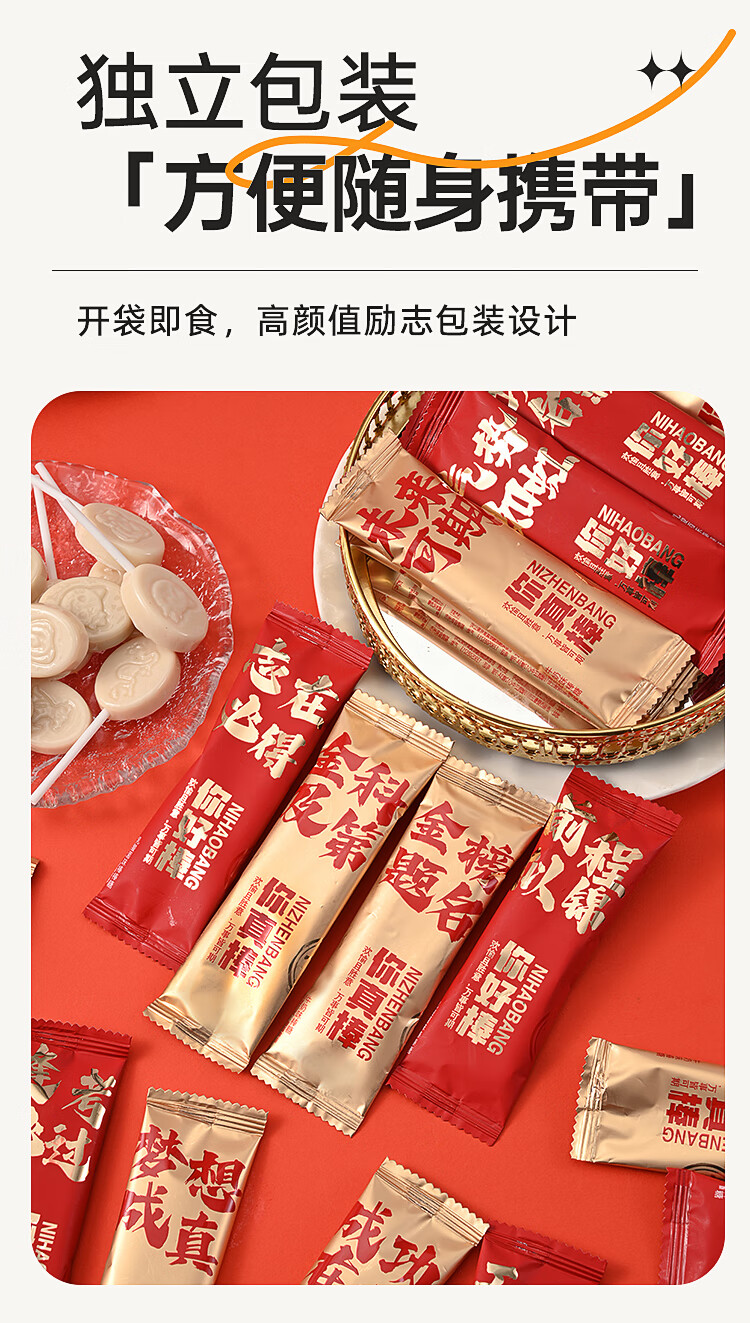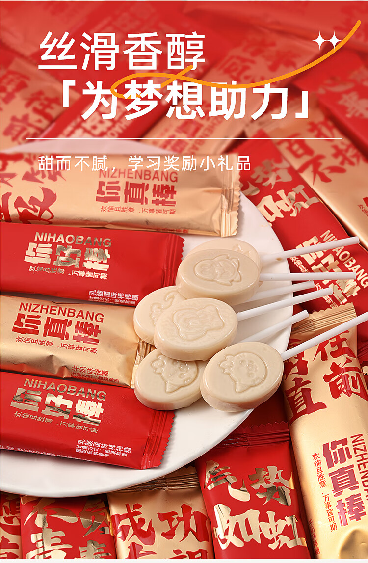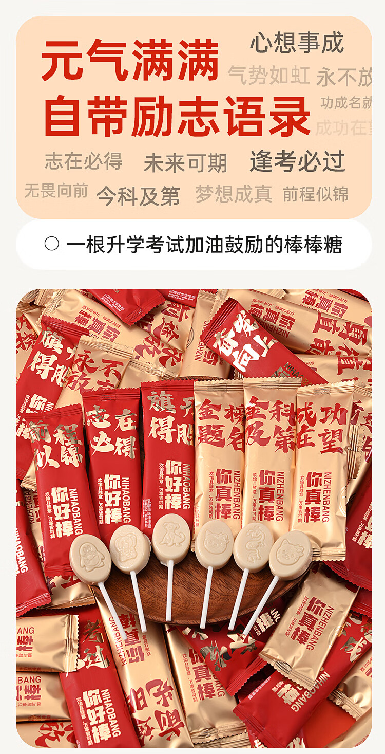 味馋忆刻励志棒棒糖高颜值中高考加油鼓励祝福糖果奖励学生小礼物 奖状棒棒糖原味50支
