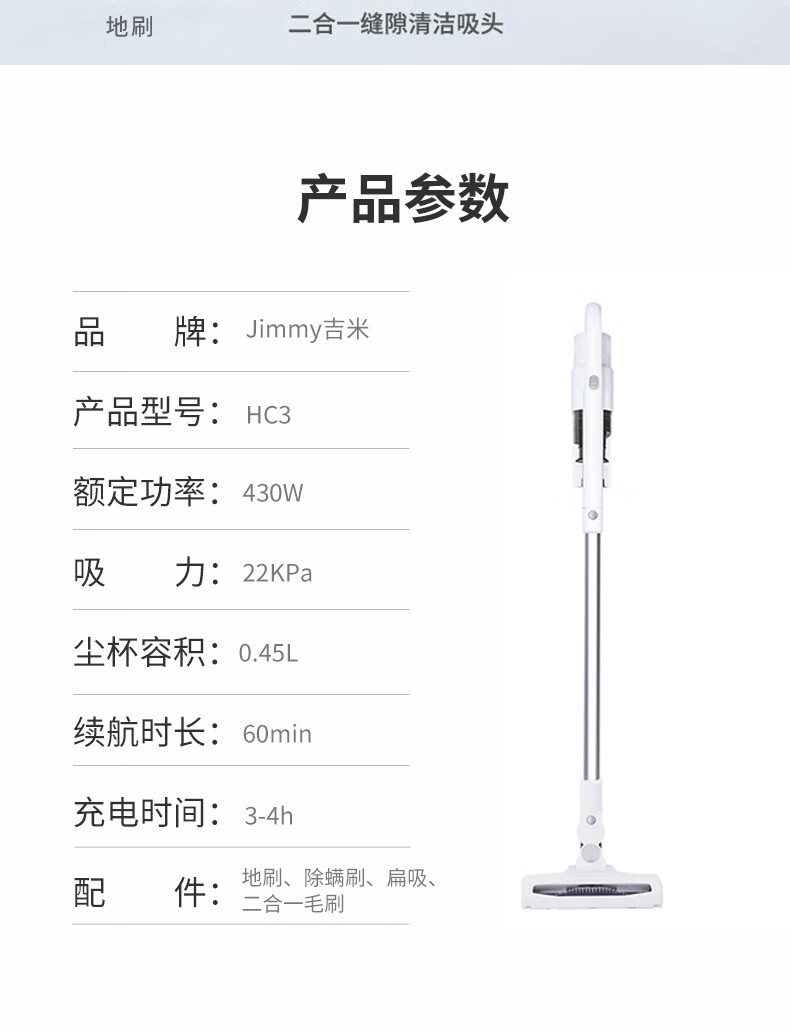莱克吉米JIMMY家用无线大吸力吸尘器HC3智能轻便手持长续航除螨吸毛一体吸尘器防缠绕