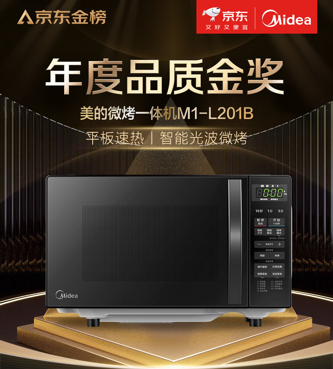 美的(Midea)微波炉烤箱一体机 小型家用20升微波炉 光波加热 钻石背板(M1-L201B)