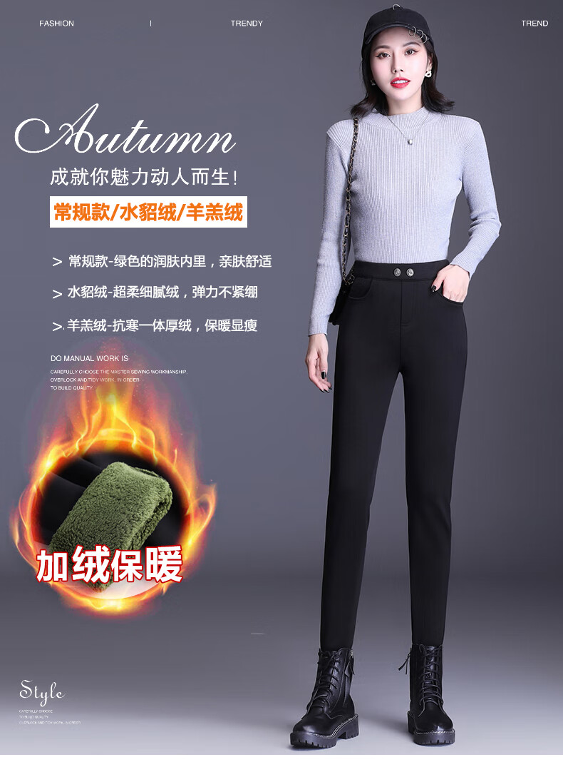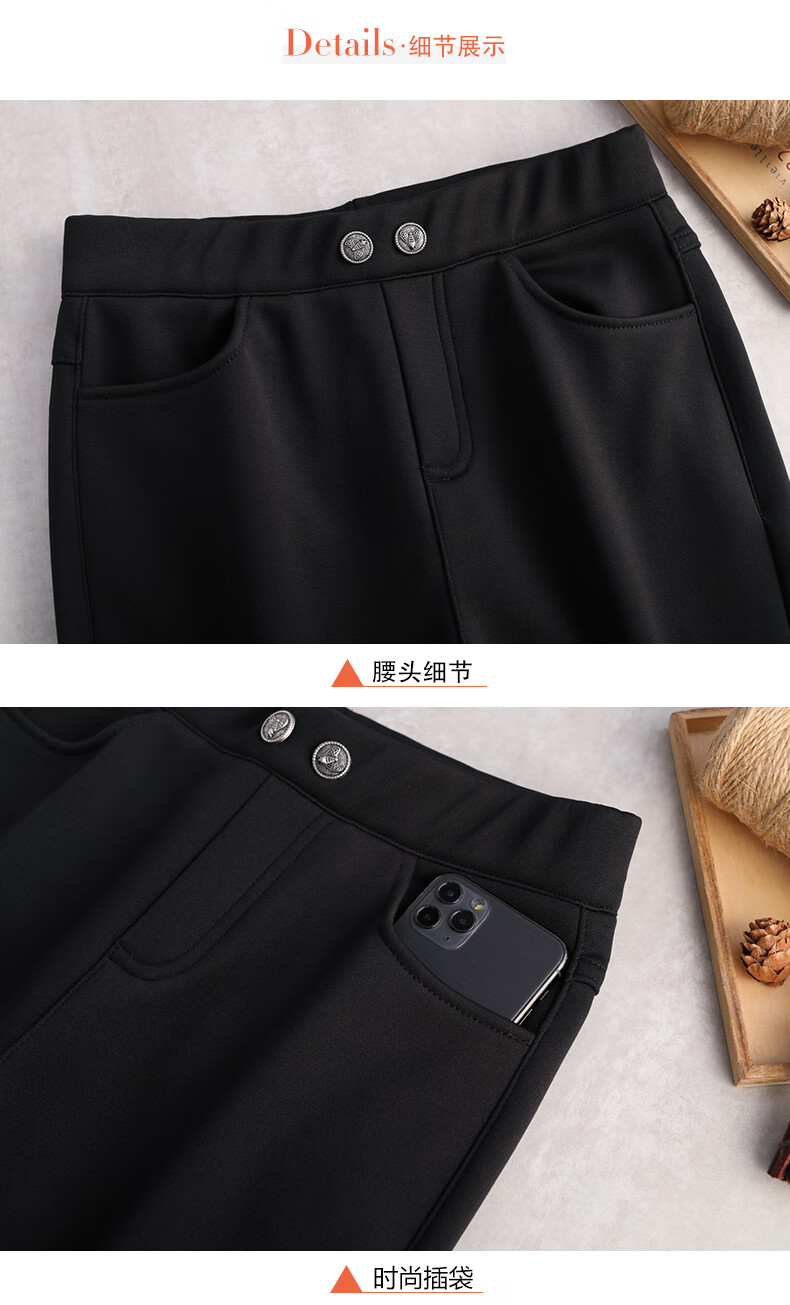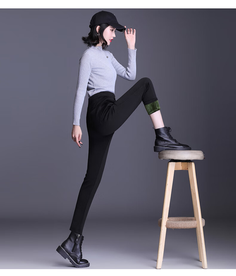 逸阳断码加绒打底裤女外穿秋冬棉裤高腰小脚显瘦铅笔魔术裤 黑色【单裤】 S