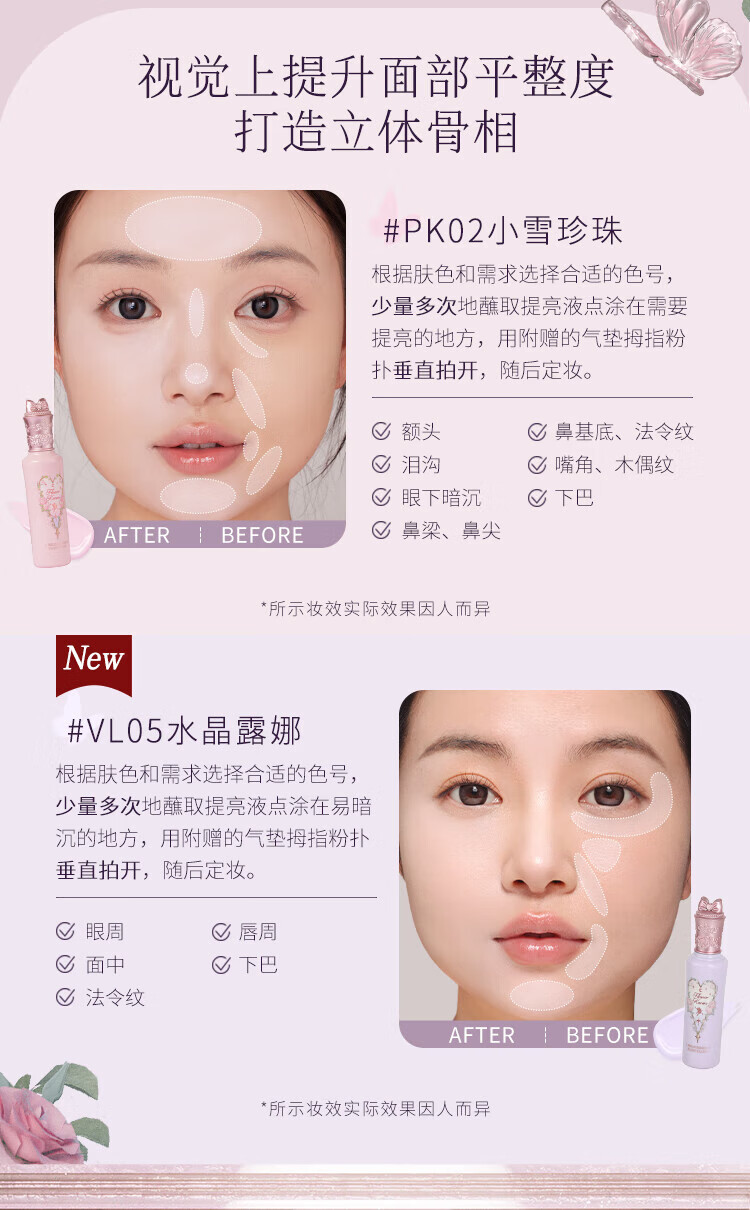 花知晓仲夏夜提亮液遮瑕液液体修容遮痘印黑眼圈七夕情人节礼物 WH01+PK02