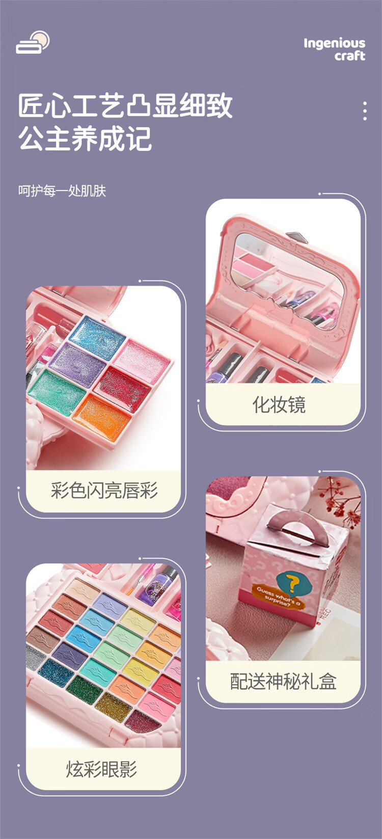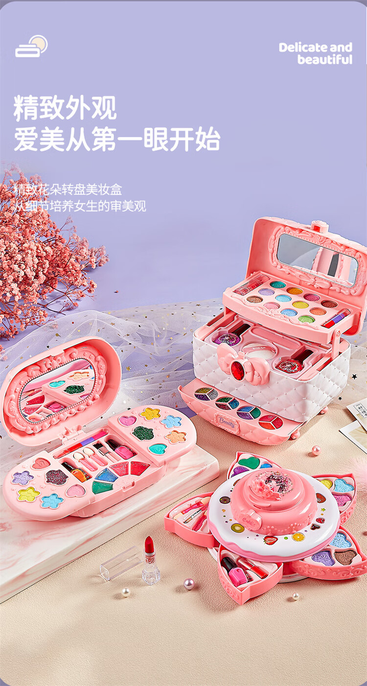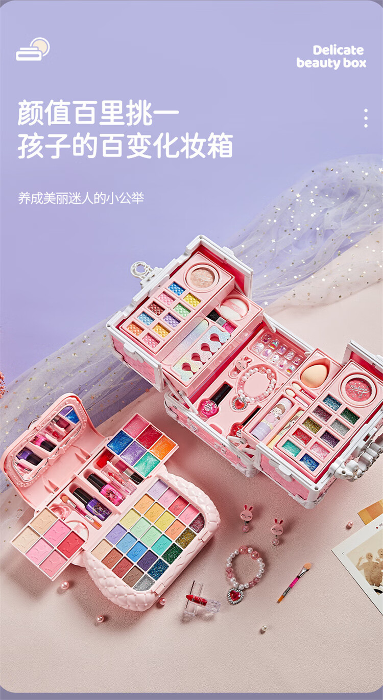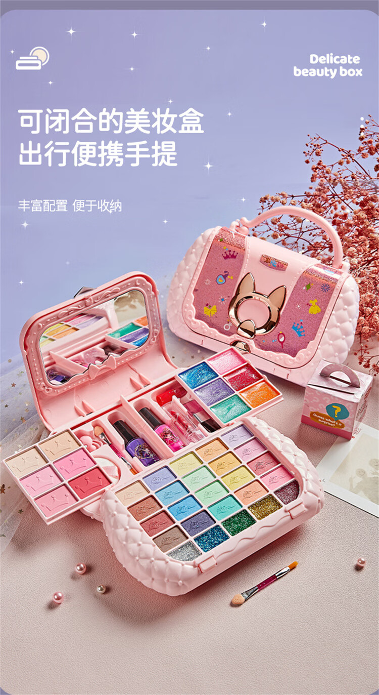 奥智嘉儿童化妆品套装玩具女孩新年生日礼物彩妆粉底化妆盒口红指甲油