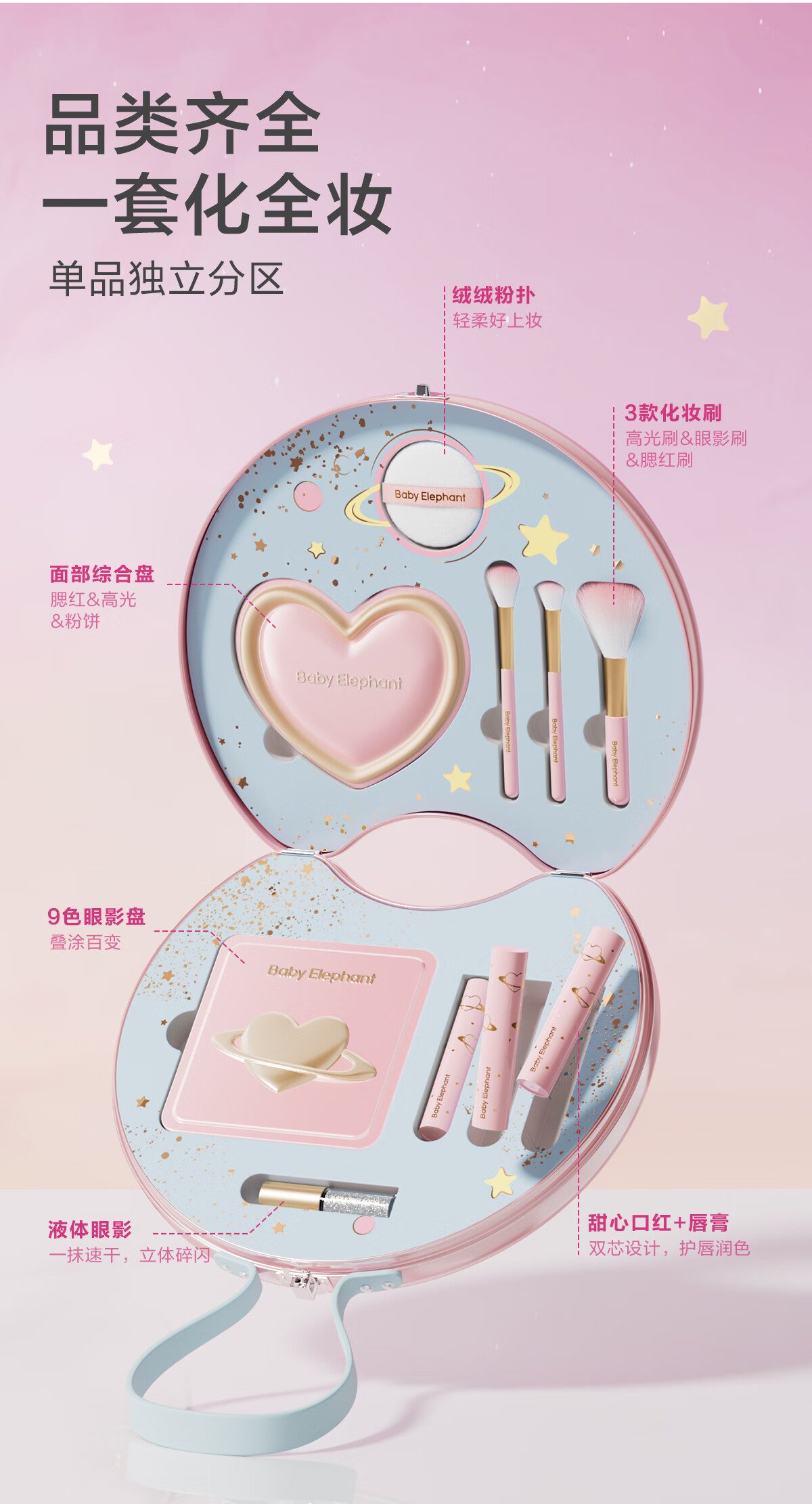 红色小象【新年礼物】宇宙奇趣心愿双层儿童彩妆礼盒整套口红眼影生日礼物