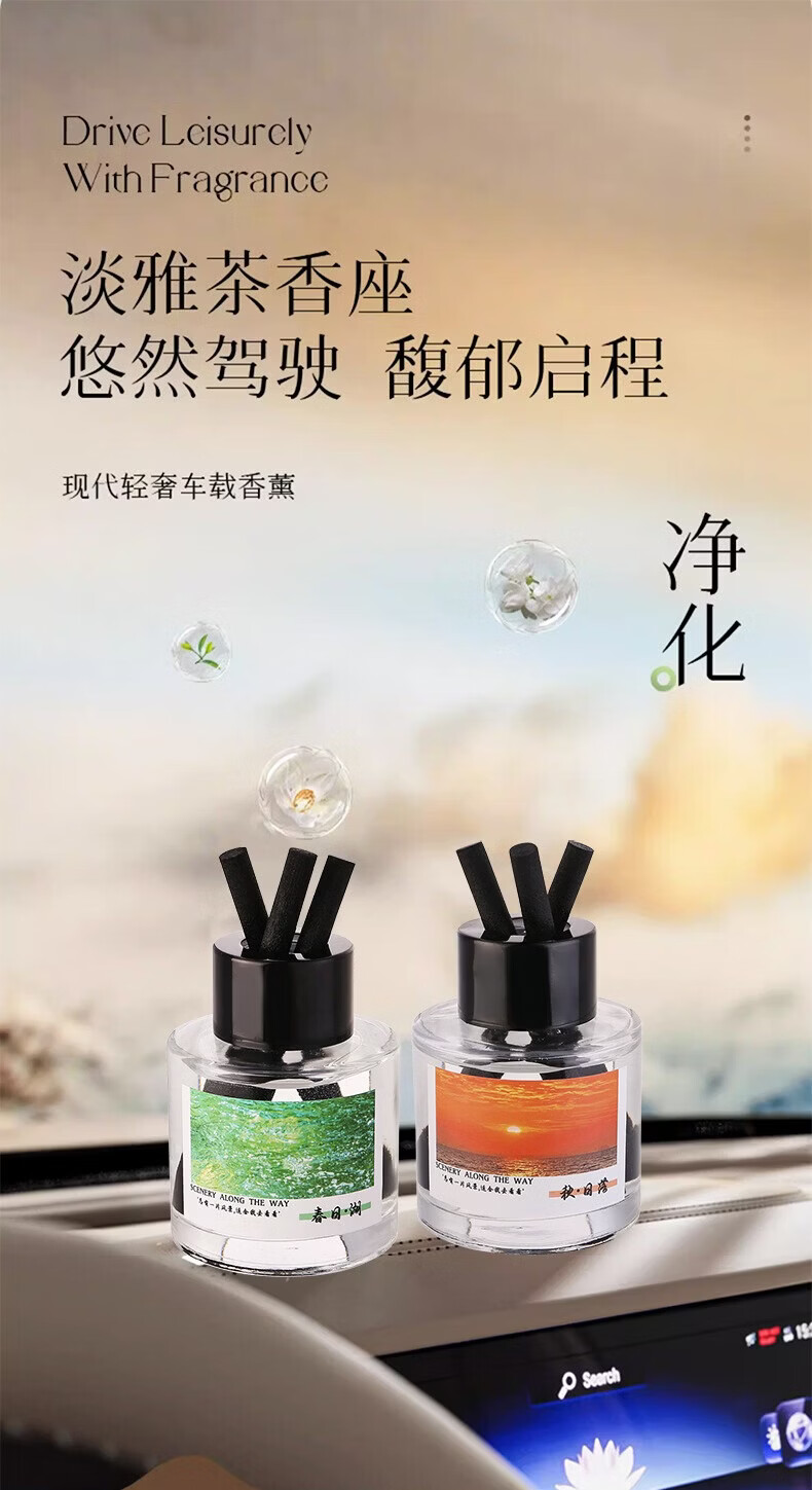 车载香薰 香薰精油香氛酒店室内空气清新剂汽车除臭摆件 春日湖【1瓶装】