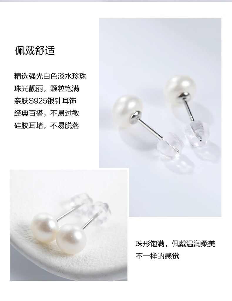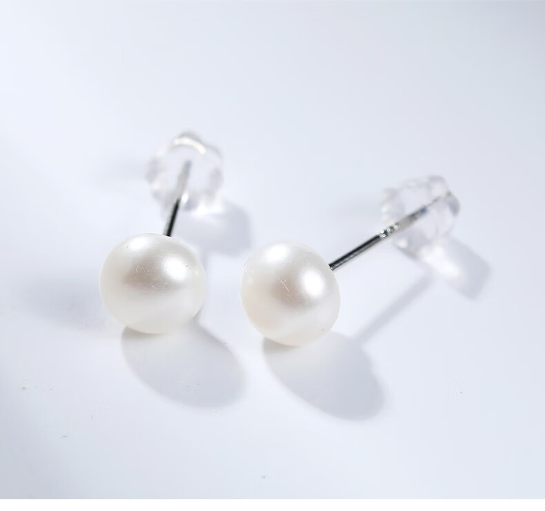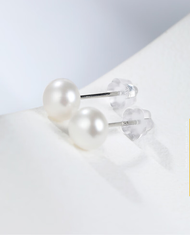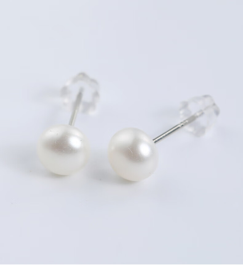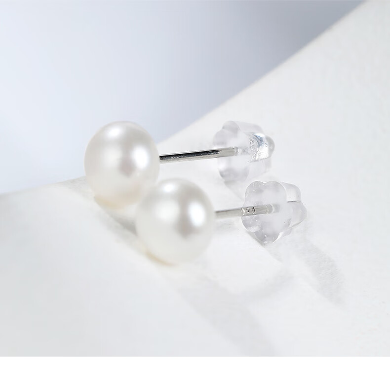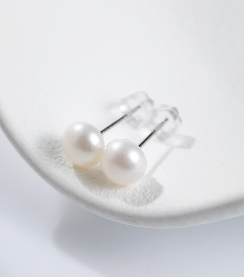 黛米简约素钉强光珍珠耳钉耳环送女友白色珍珠耳钉S925银耳钉礼物女 6-7mm