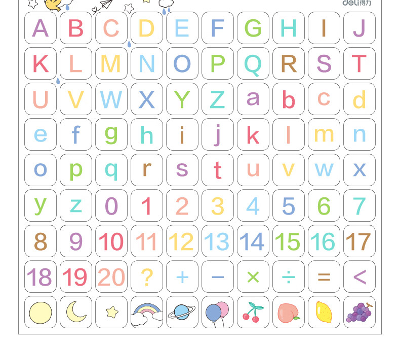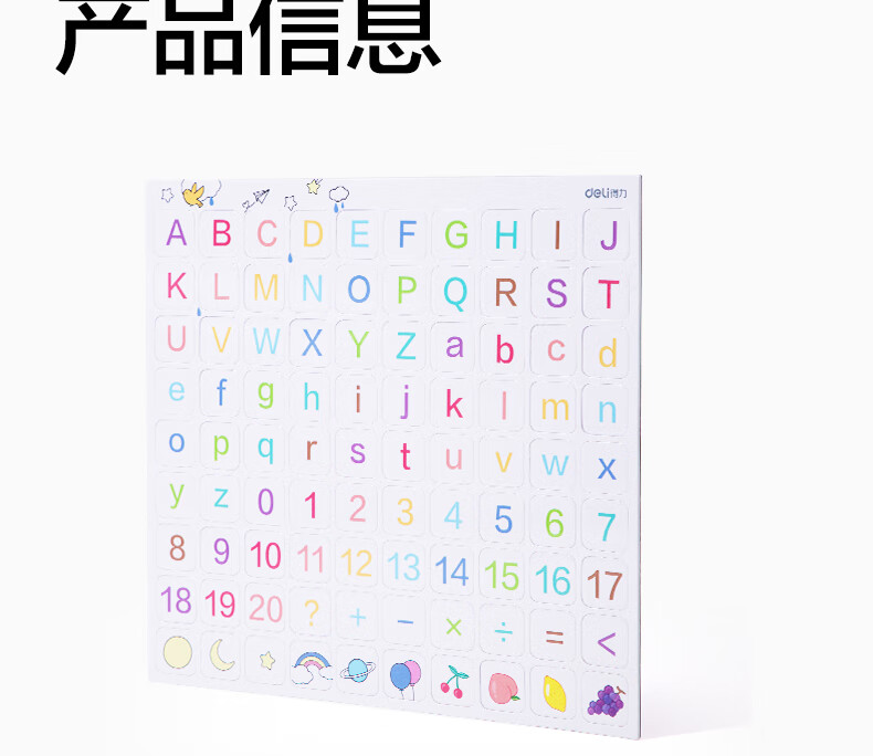 得力MF167启蒙字母软磁贴 白板家用软白板软磁片吸铁石磁力贴橡胶磁铁贴片黑板磁性253*238*2.7mm
