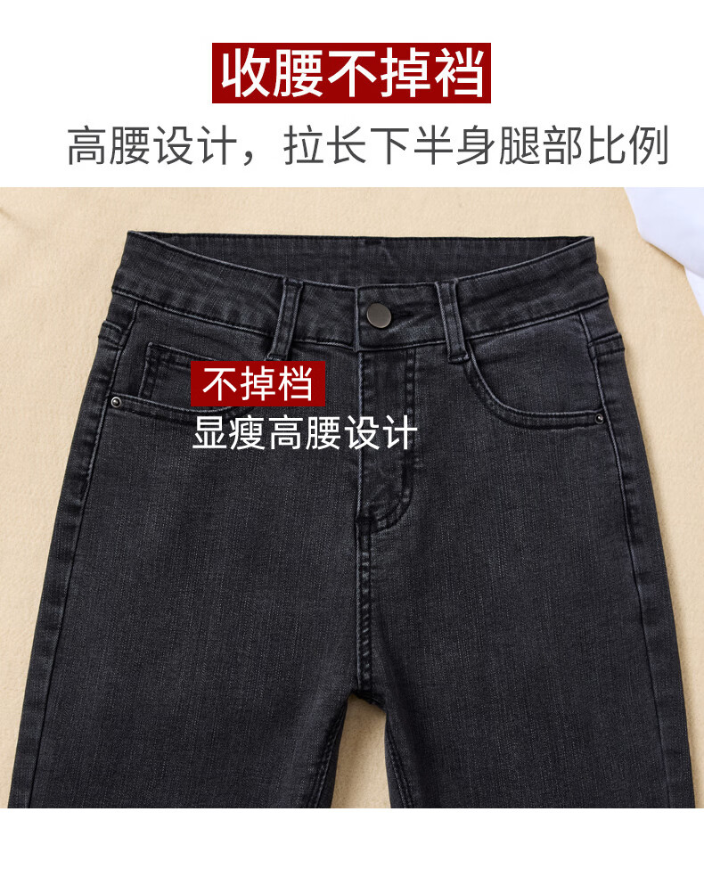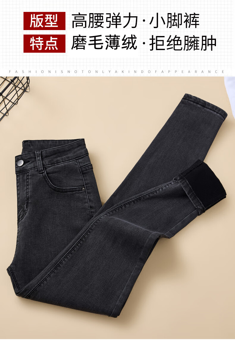 妃衣度(FYDOUL)牛仔裤女款秋冬款2025年新款加绒高腰修身显瘦弹力紧身小脚铅笔裤 蓝灰色长裤【单裤】 27 90-100斤