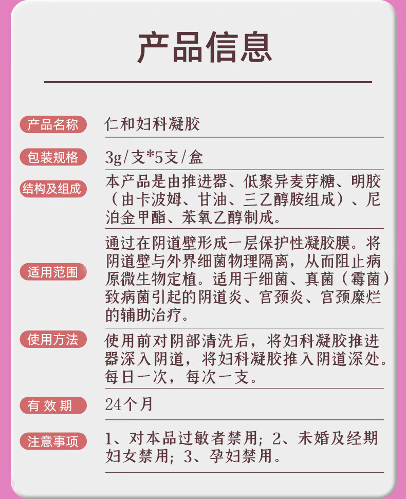 仁和妇科抑菌凝胶阴道炎宫颈炎医用私处专用细霉菌性白带外阴瘙痒保养