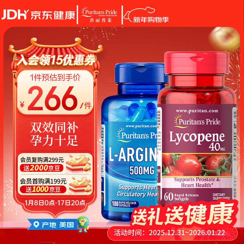 普丽普莱番茄红素40mg*60粒+精氨酸500mg*100粒美国进口呵护前腺男士备孕