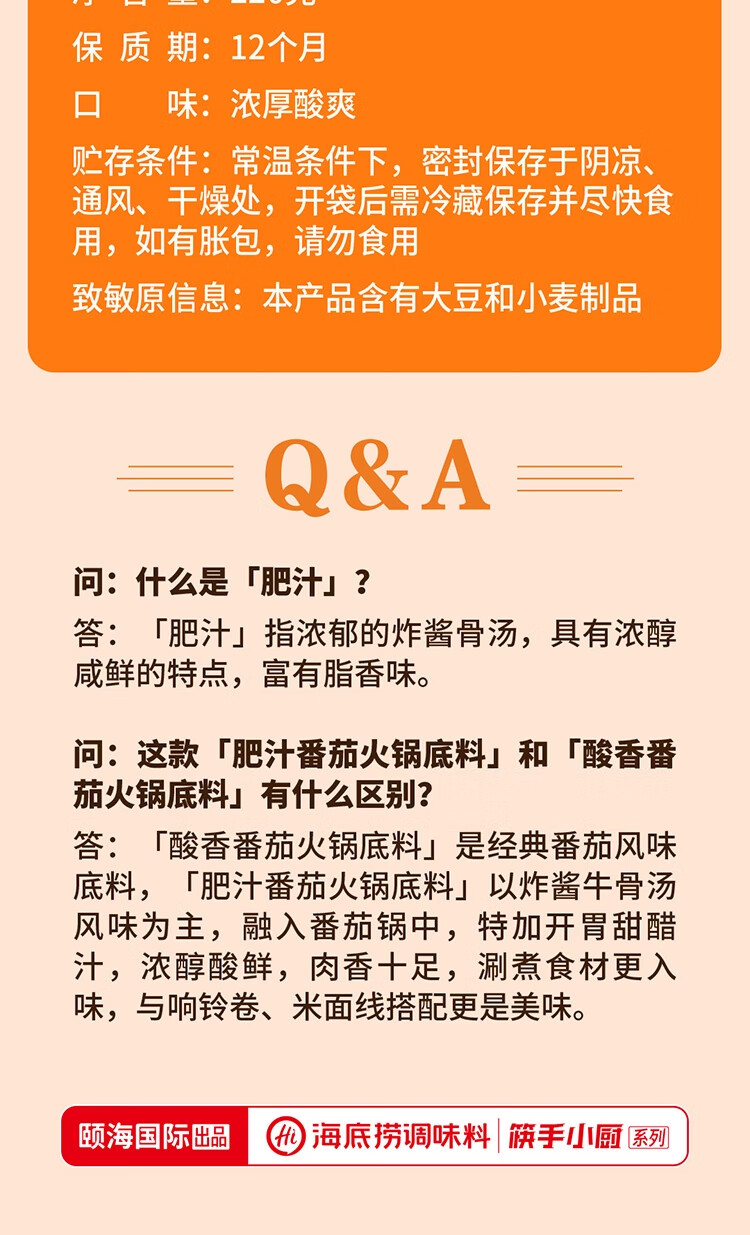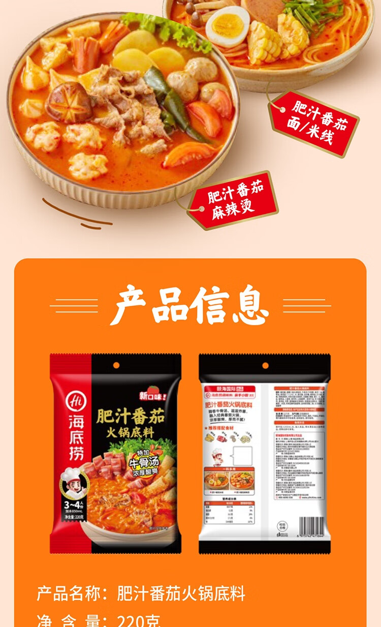 海底捞火锅底料 肥汁番茄火锅底料220g 3·4人份 牛骨汤 一料多用