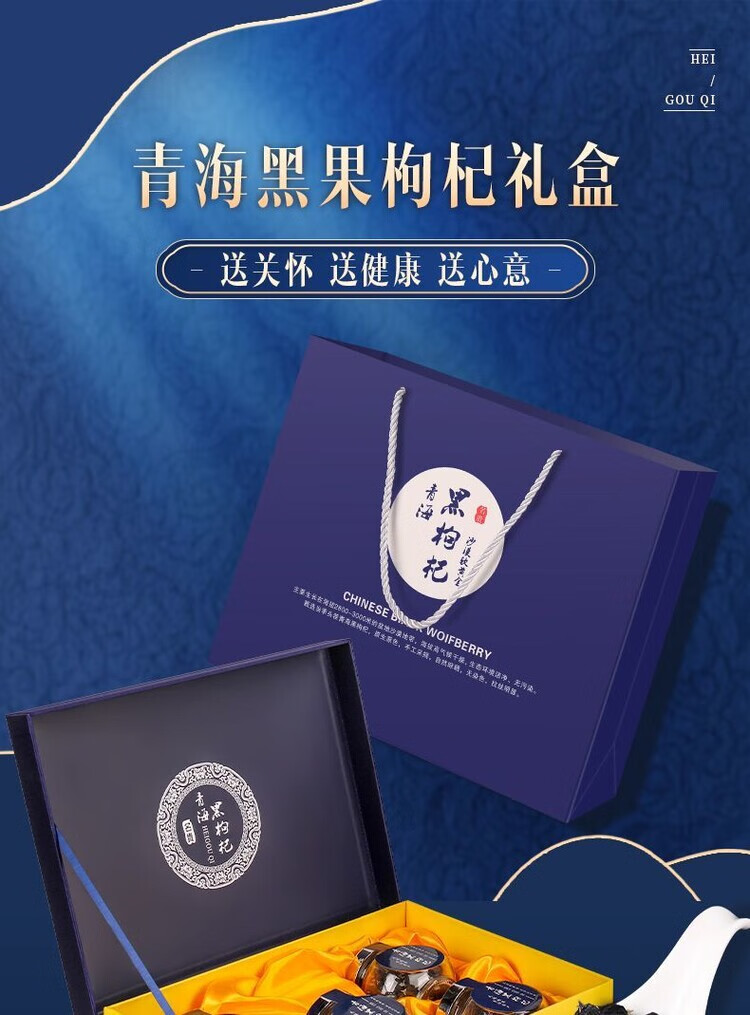 胖东来同款选走亲戚礼品实用黑枸杞礼盒装年货礼盒佳品长辈送父母 100g 中果礼盒装 送礼袋