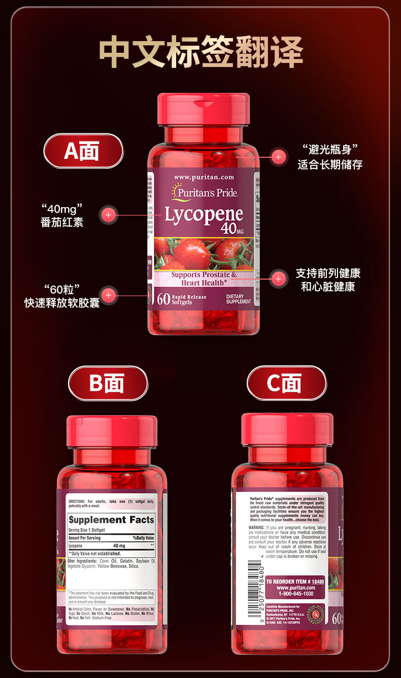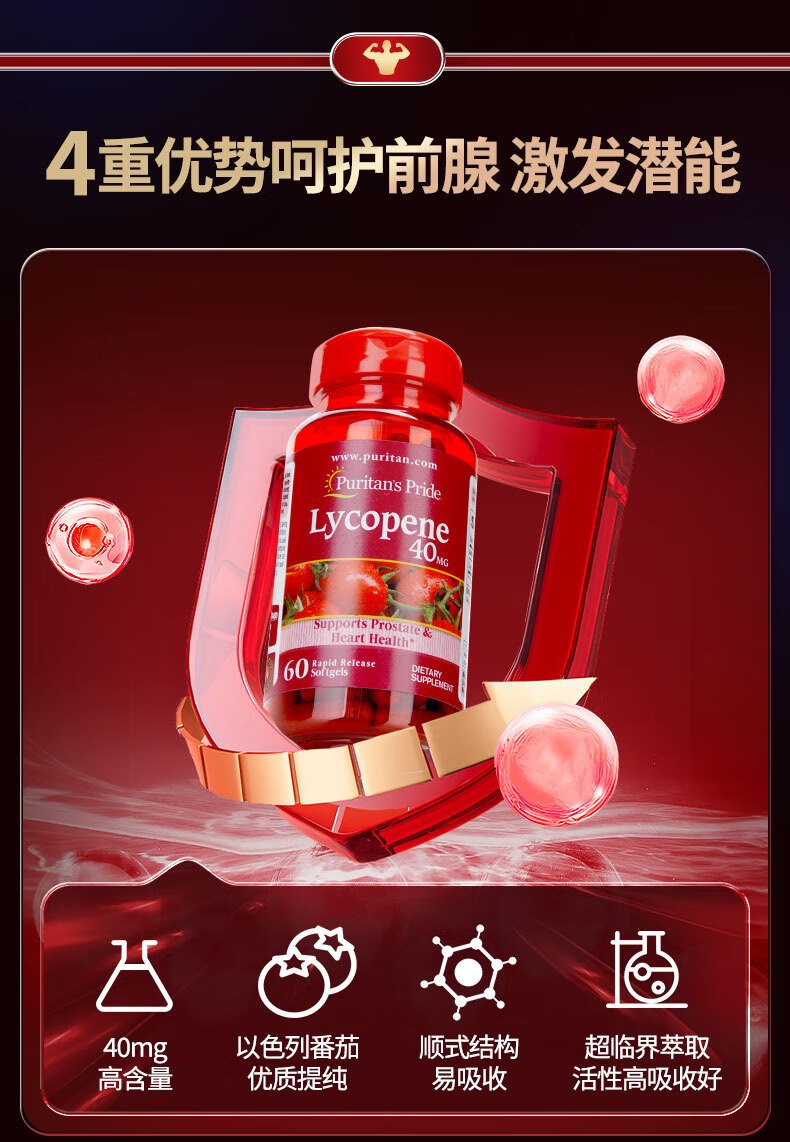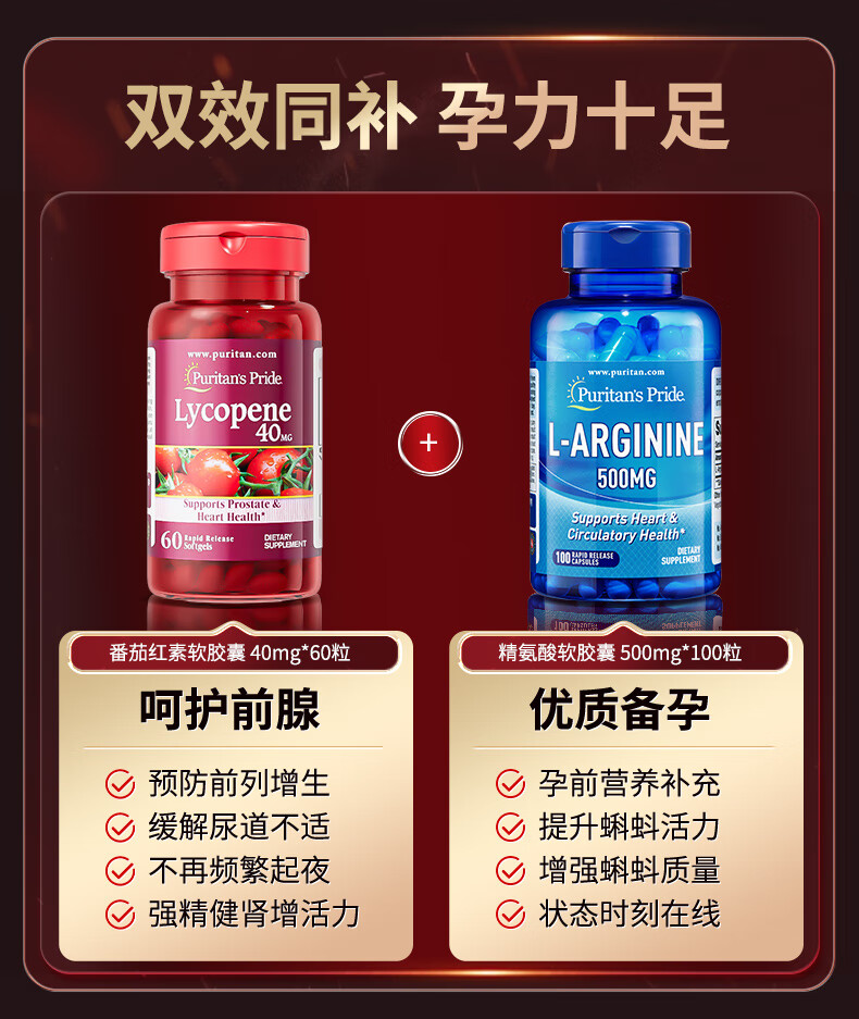 普丽普莱番茄红素40mg*60粒+精氨酸500mg*100粒美国进口呵护前腺男士备孕