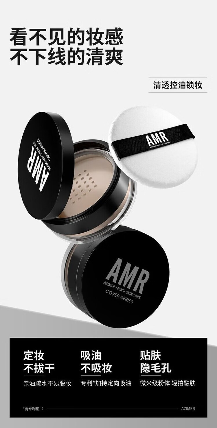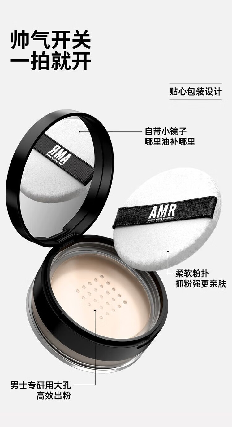 AMR男士散粉蜜粉控油防水定妆修容粉饼哑光自然遮瑕持妆 【男士定妆散粉】单盒+面膜1片