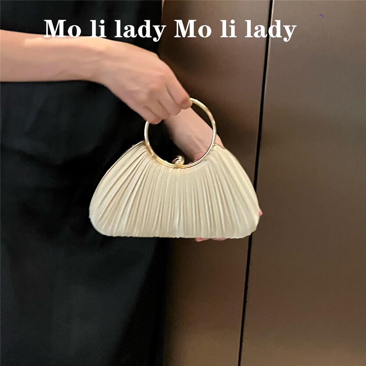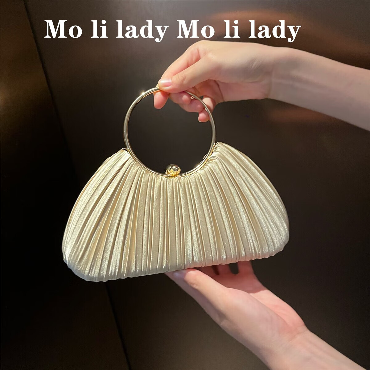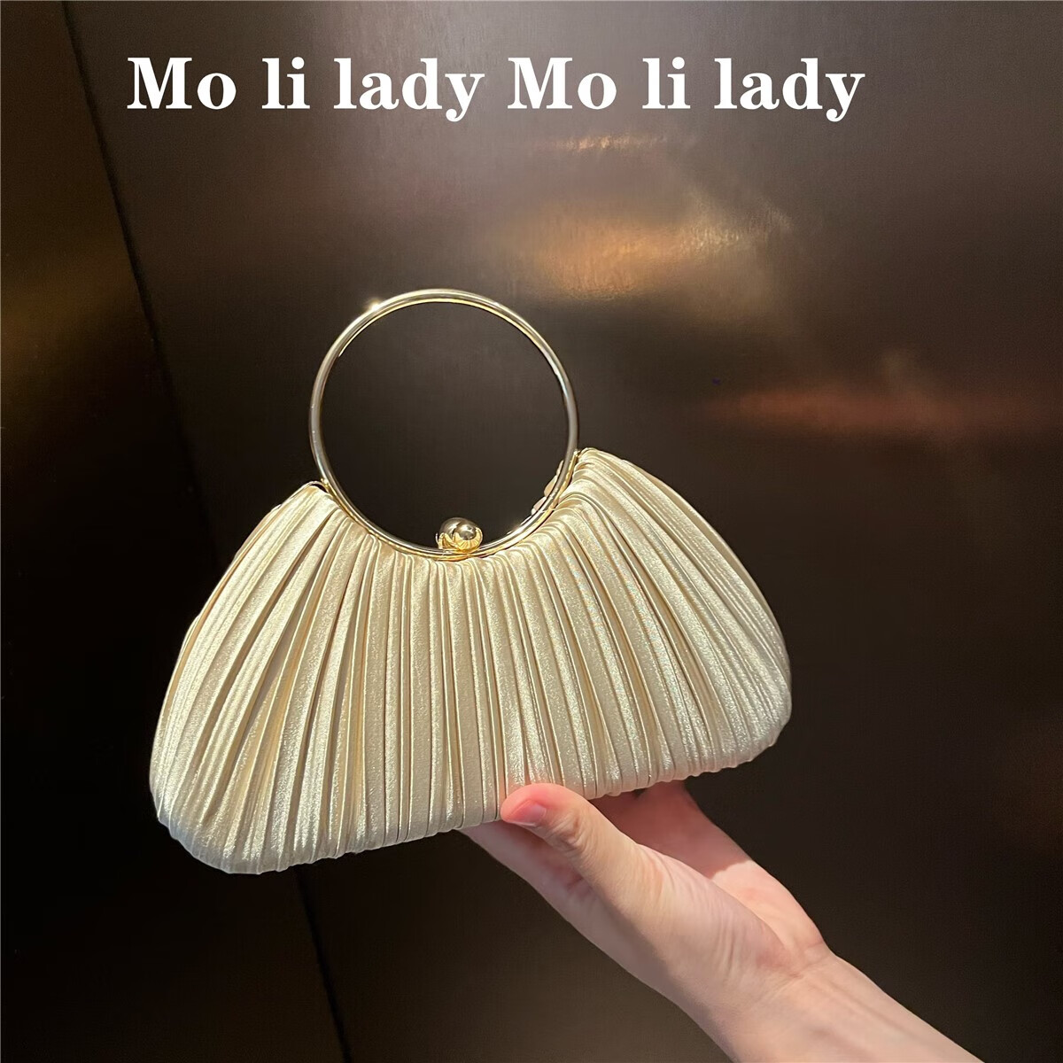名媛感皱褶包包2024新款圆环手提包晚宴旗袍包礼服手拿 圆环皱褶包