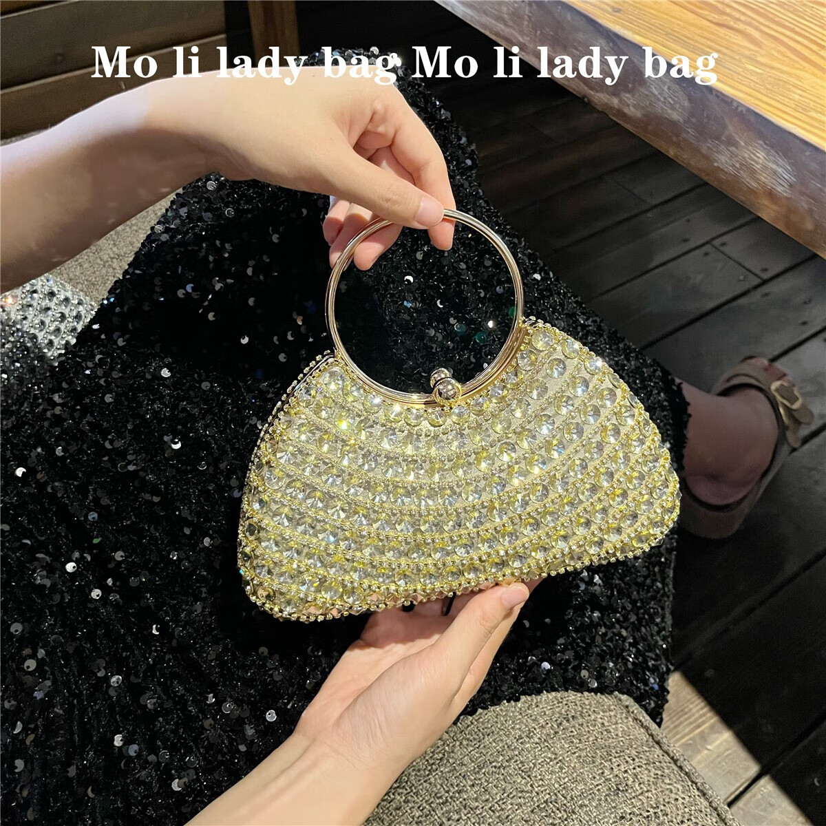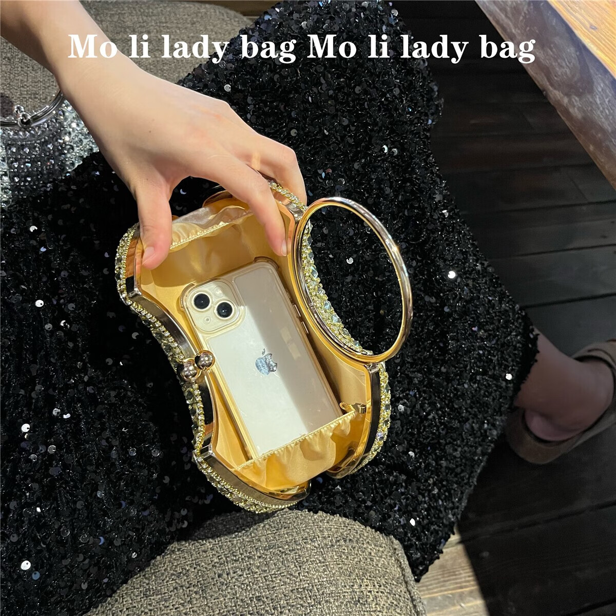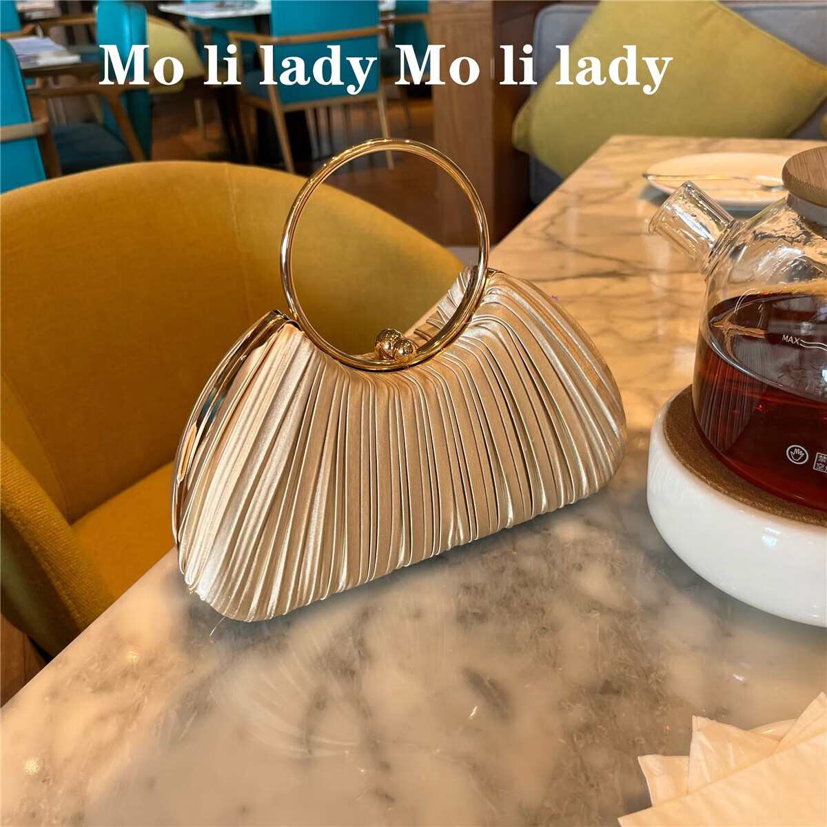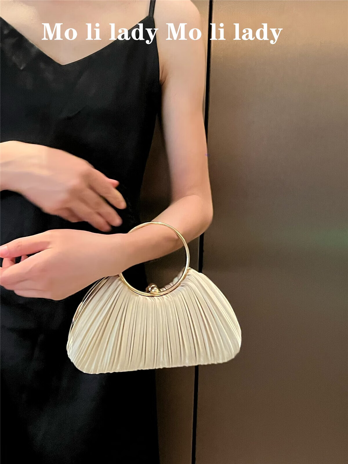 名媛感皱褶包包2024新款圆环手提包晚宴旗袍包礼服手拿 圆环皱褶包