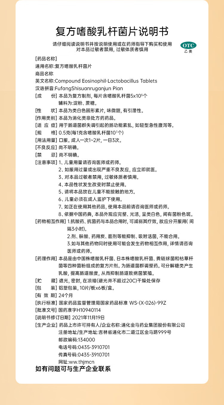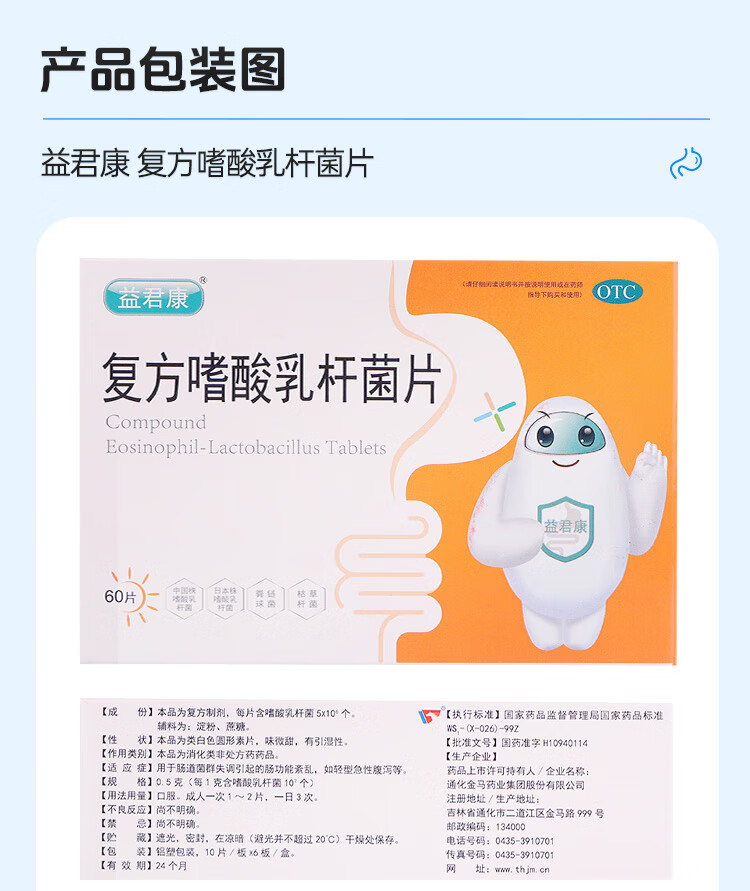 益君康 复方嗜酸乳杆菌片 0.5g*60片/盒 益生菌儿童肠道 治疗便秘 四联活菌片 幽门螺旋杆菌用药 拉肚子药腹泻