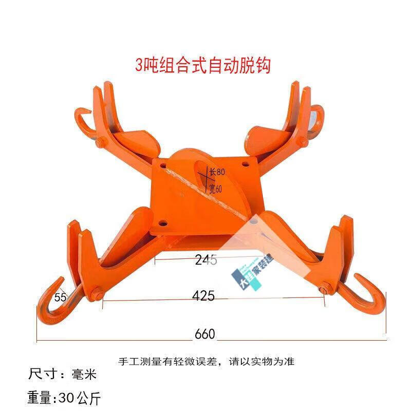迈恻亦自动脱卸吊钩吨包带自动摘钩起中吊钩行车挂钩 组合式自动脱钩2吨