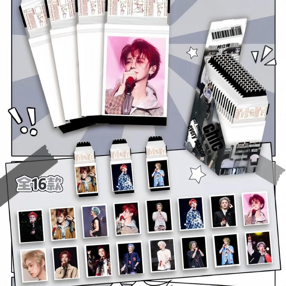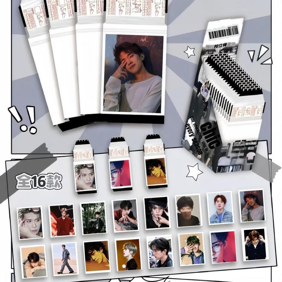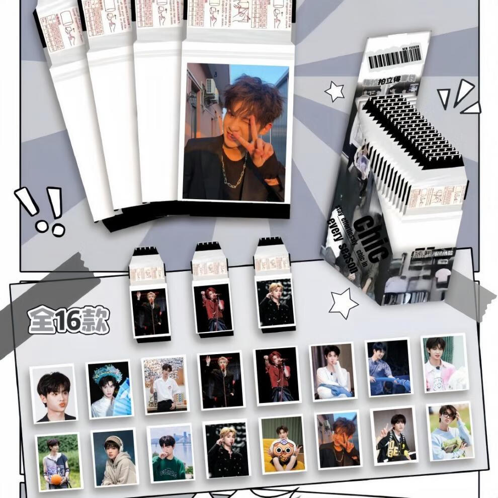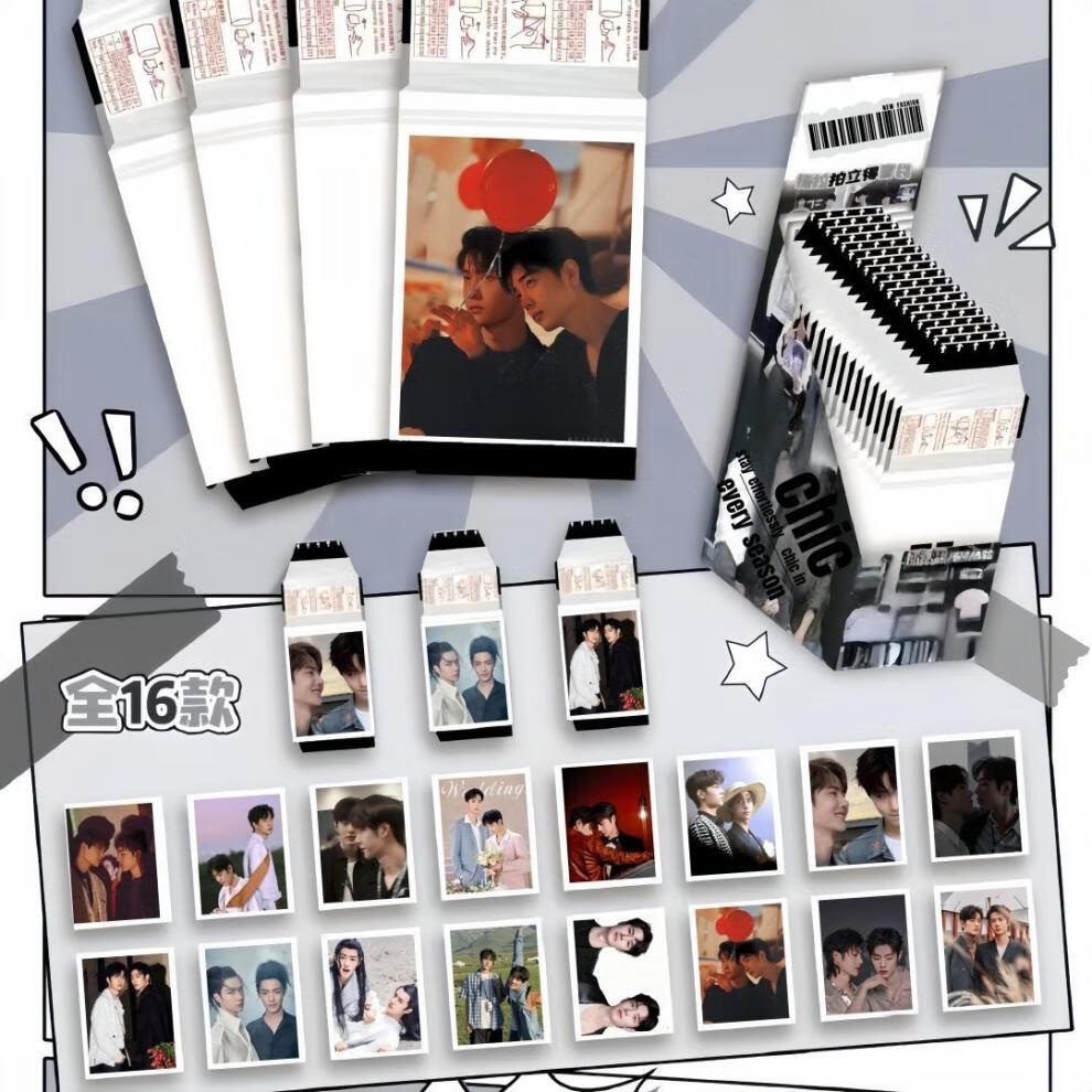 野冲顺恨逆爱CP可撕拉拍立得仿撕拉片直播间盲盒袋小卡 陈哲远 16可撕拉小卡盲盒覆膜黏贴