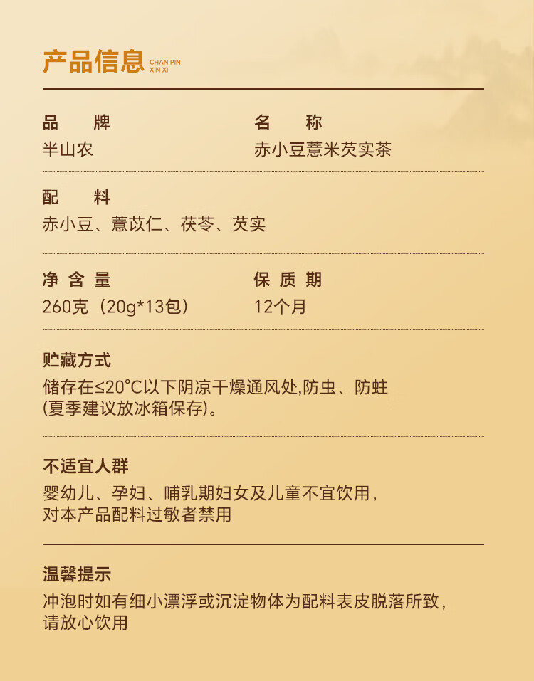 半山农 红豆薏米茶260g 三伏天茶祛喝湿茶炒熟红豆薏米水 搭姜枣茶姜粉