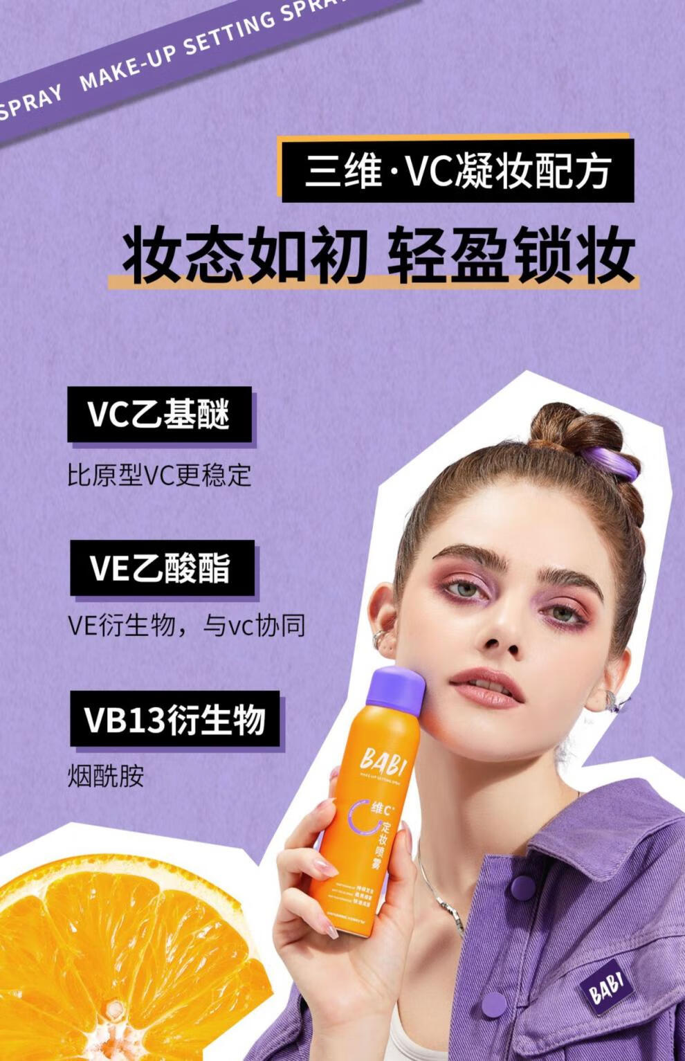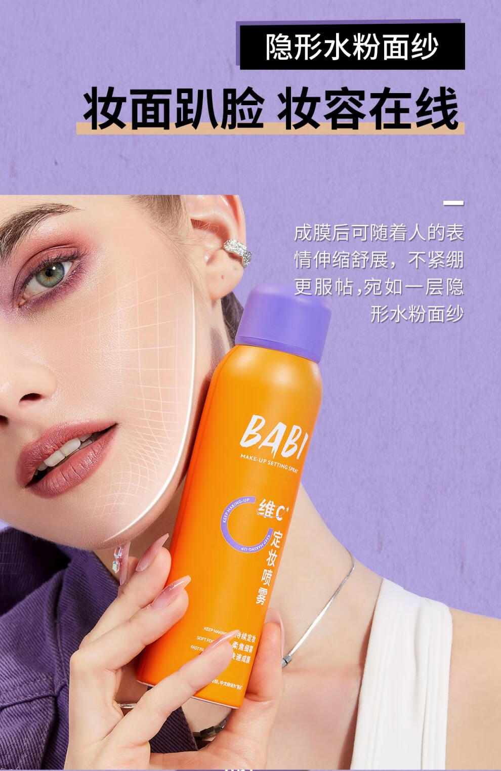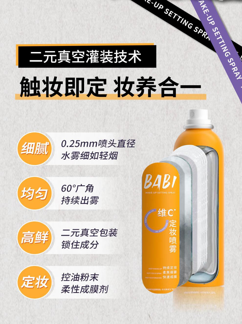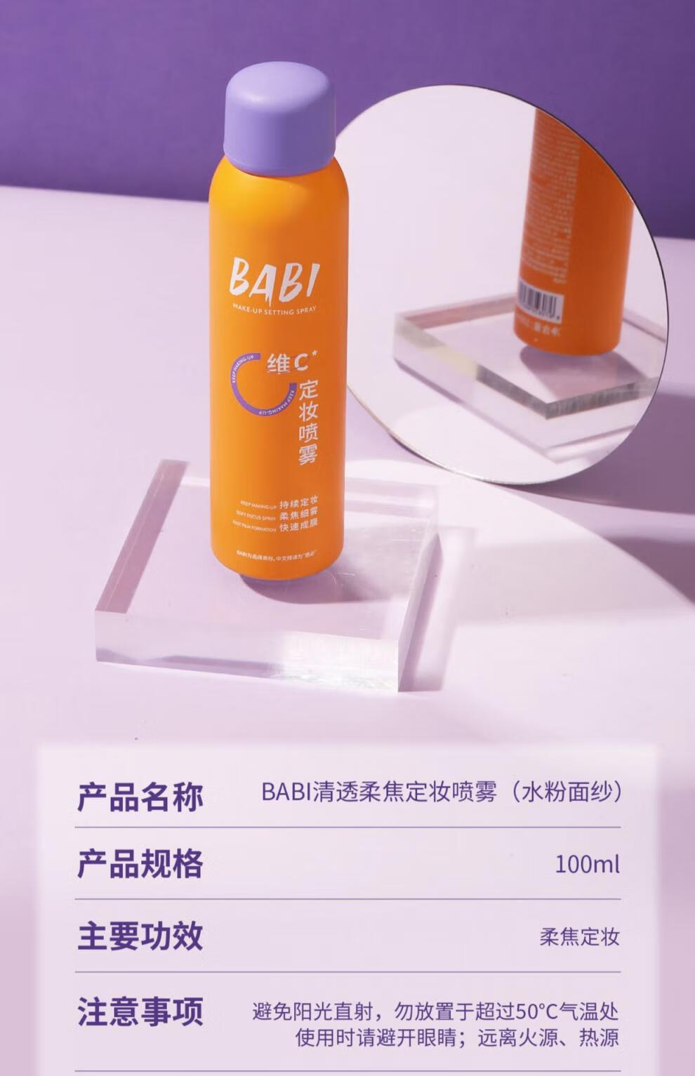 BABI定妆喷雾水VC持妆控油清透柔焦防水防汗不脱妆甘油皮定妆喷雾 100ml 100ml*1瓶