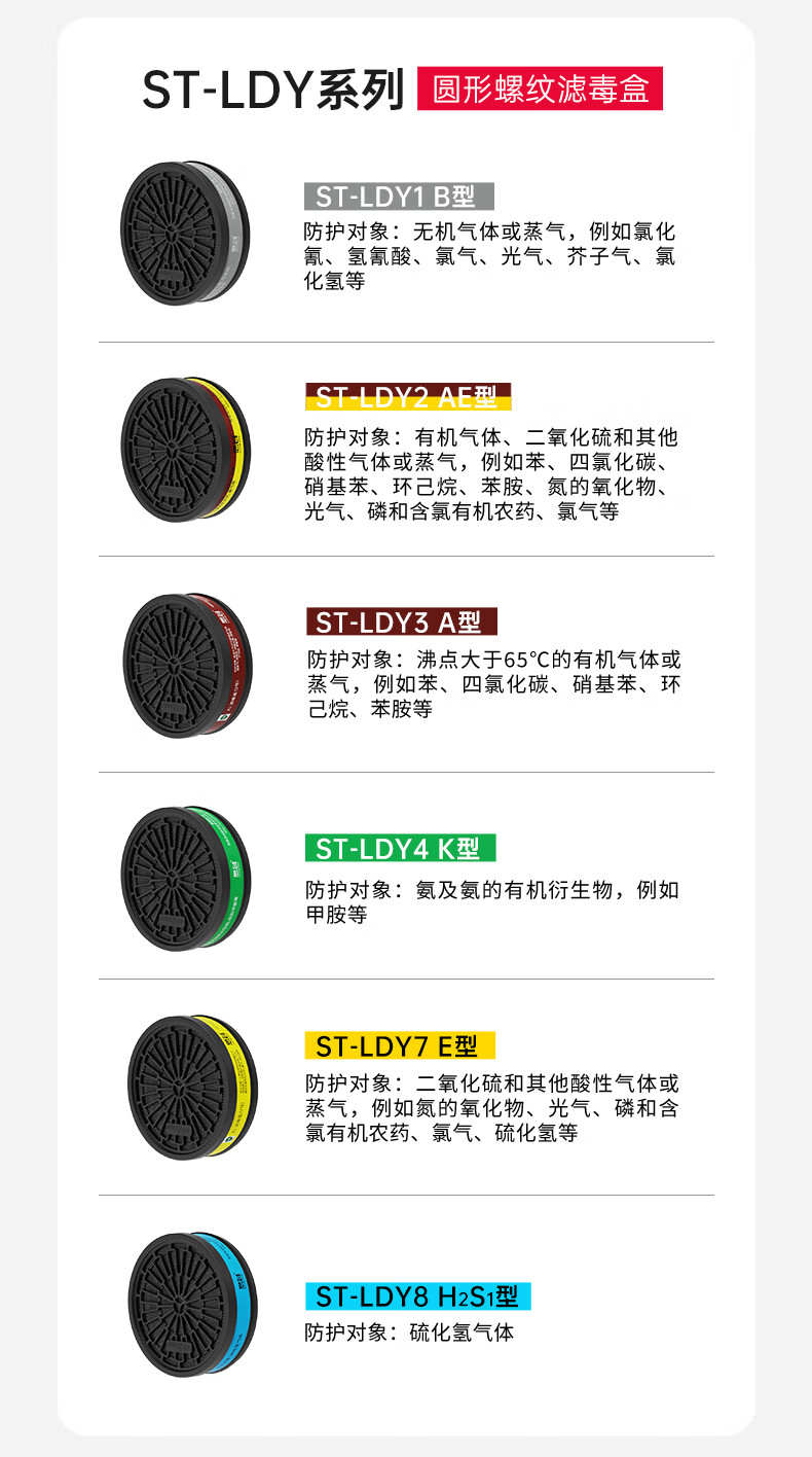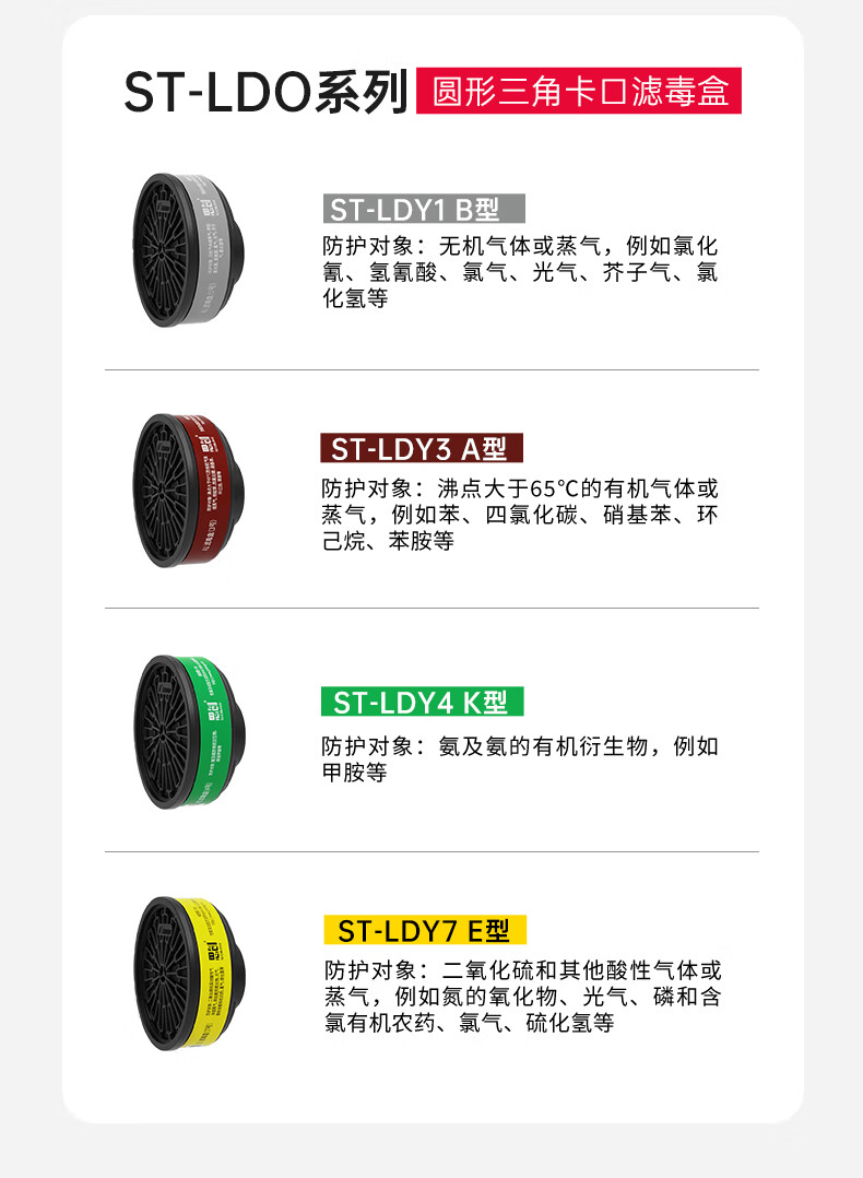 思创 ST-LDY3圆形螺纹口活性炭喷漆化工甲醛防有机气体苯丙酮醇类苯胺类A1型滤毒盒 2个(适用于ST-M40-1B)