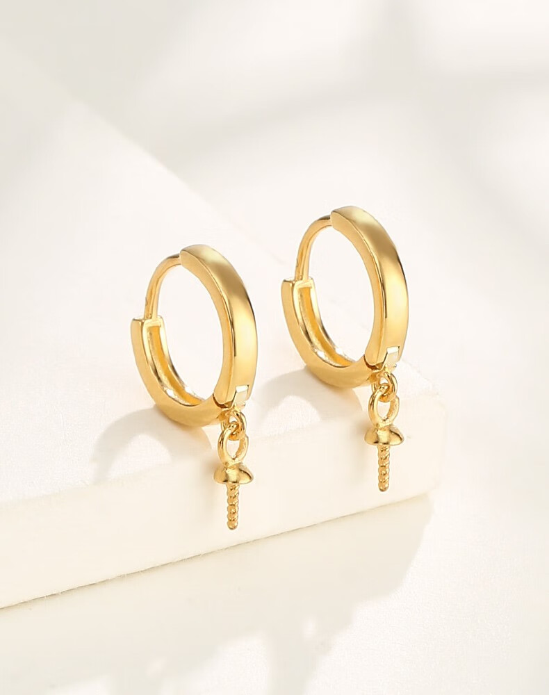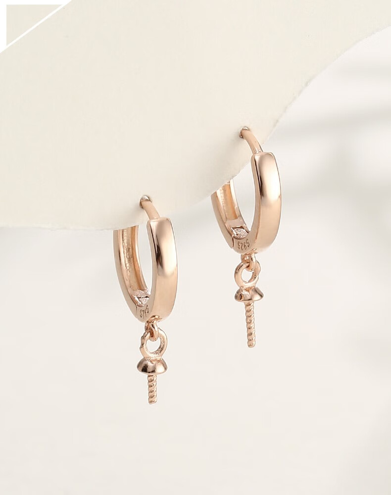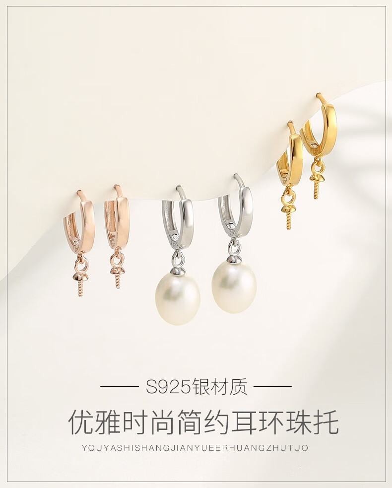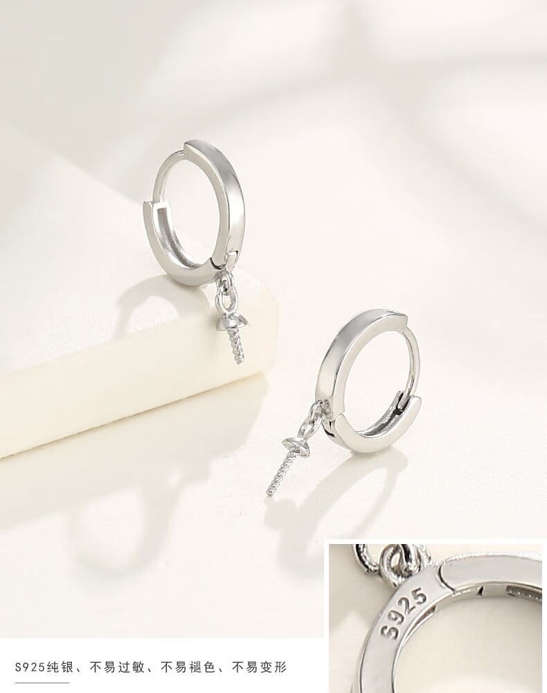 bhiodha925纯银耳环耳扣空托 托配饰日韩简约珍珠耳坠托 托diy翡翠玉珠耳 光面款-白金色