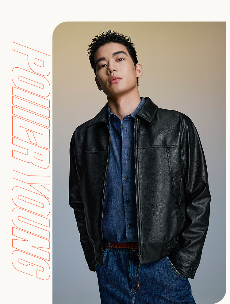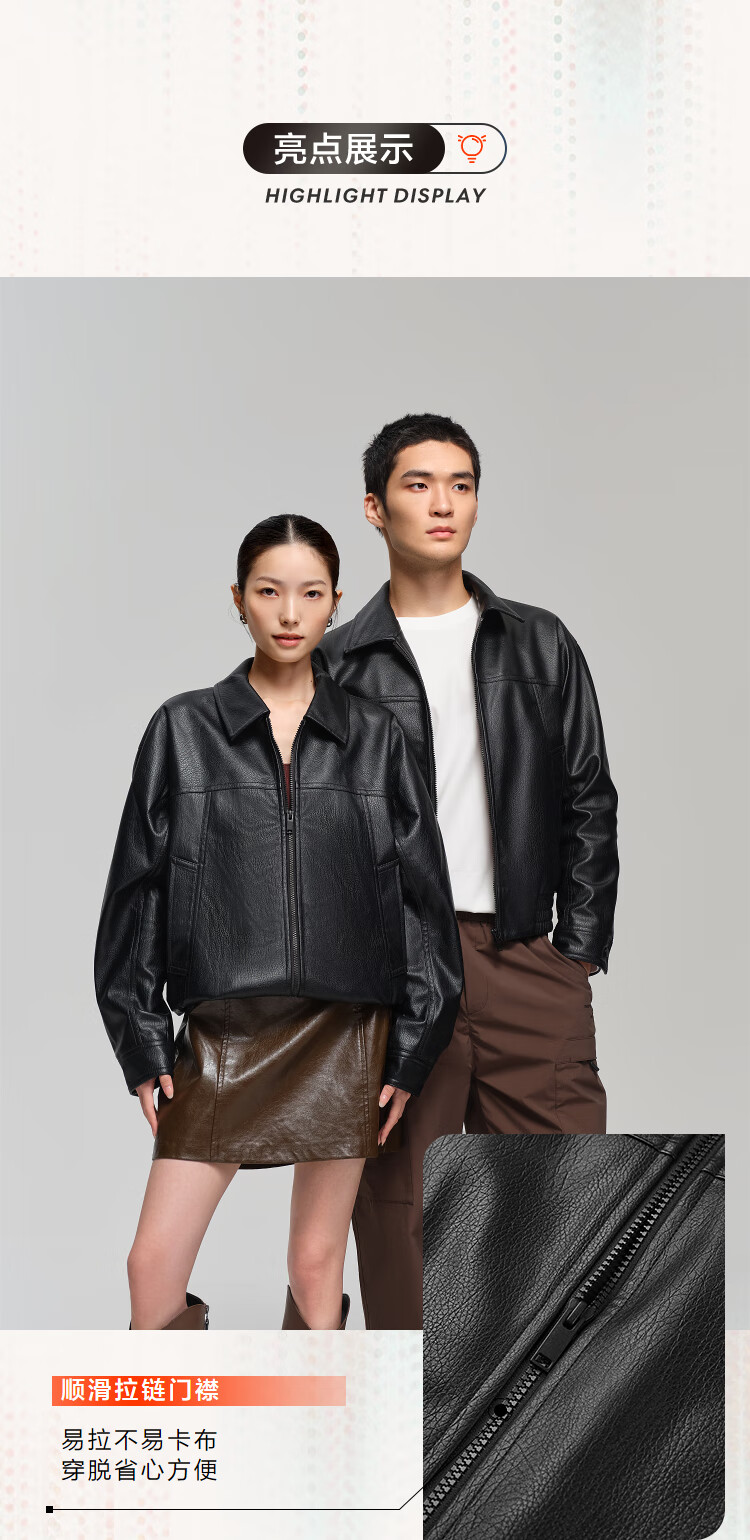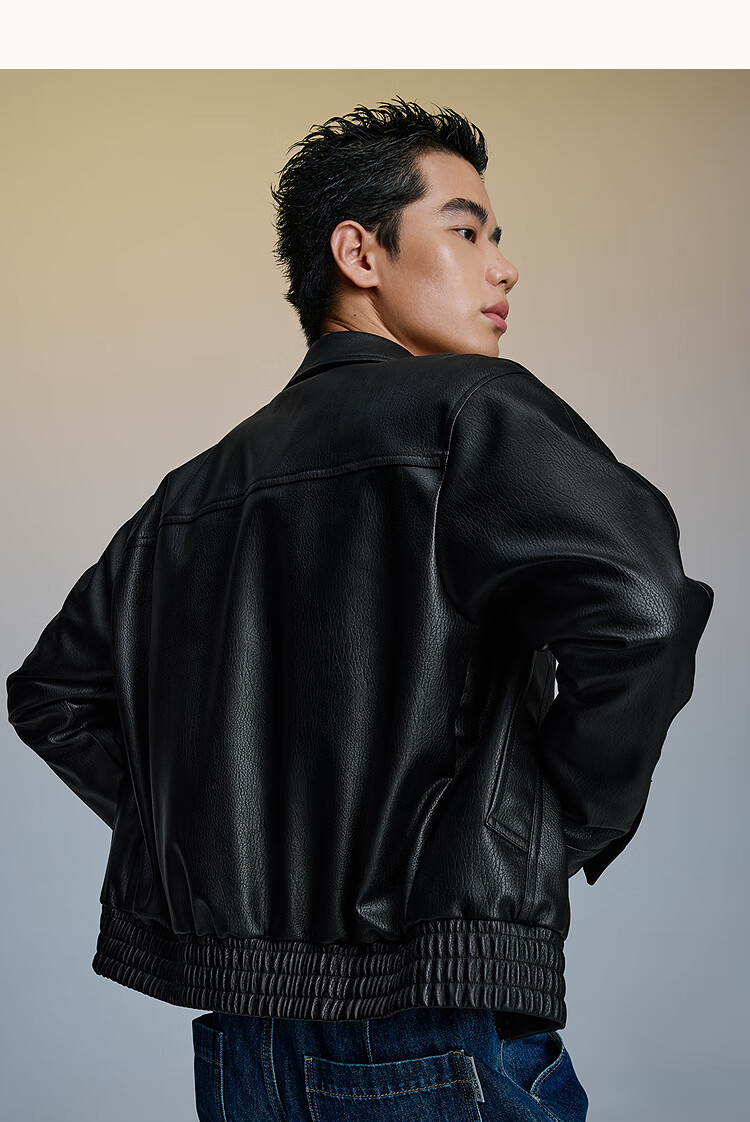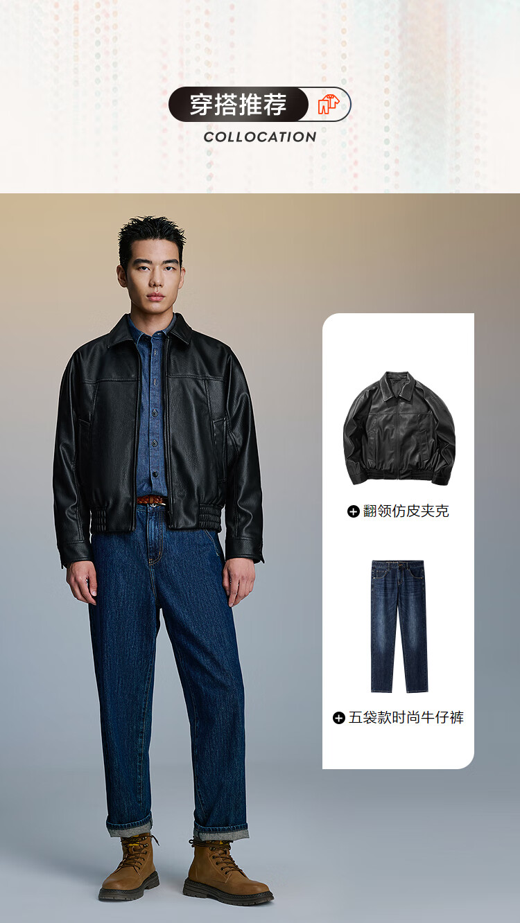 海澜之家(HLA)夹克男翻领时尚干练仿皮简约外套男秋季 黑色1D 3XL 190/104A 推荐181~196斤