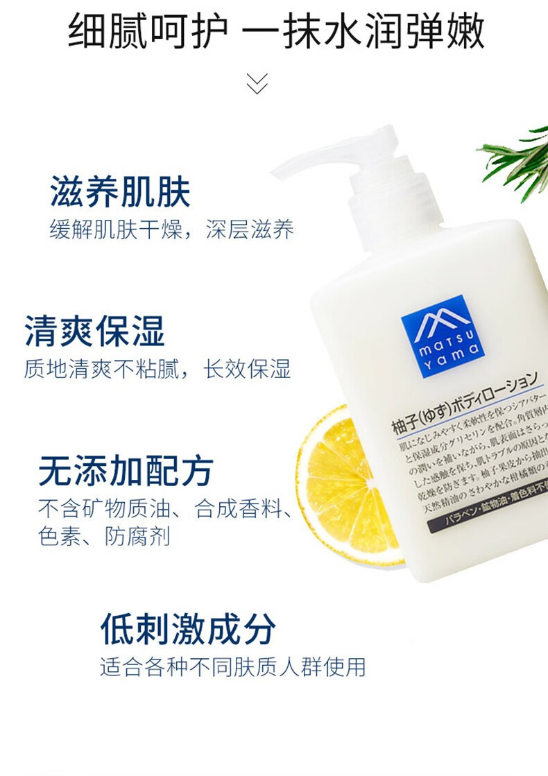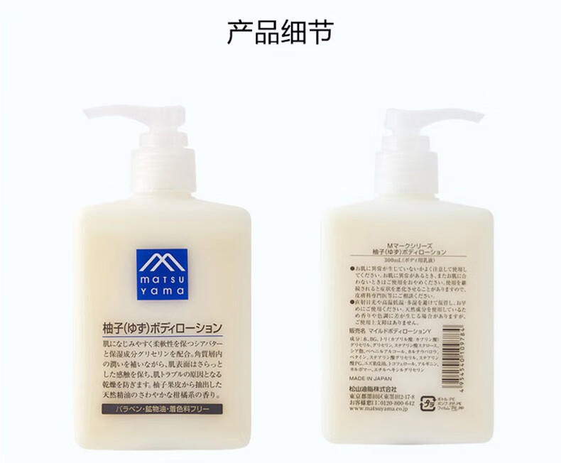 松山油脂身体乳柚子香润肤露植物精油滋润保湿不粘腻 柚子身体乳300ml
