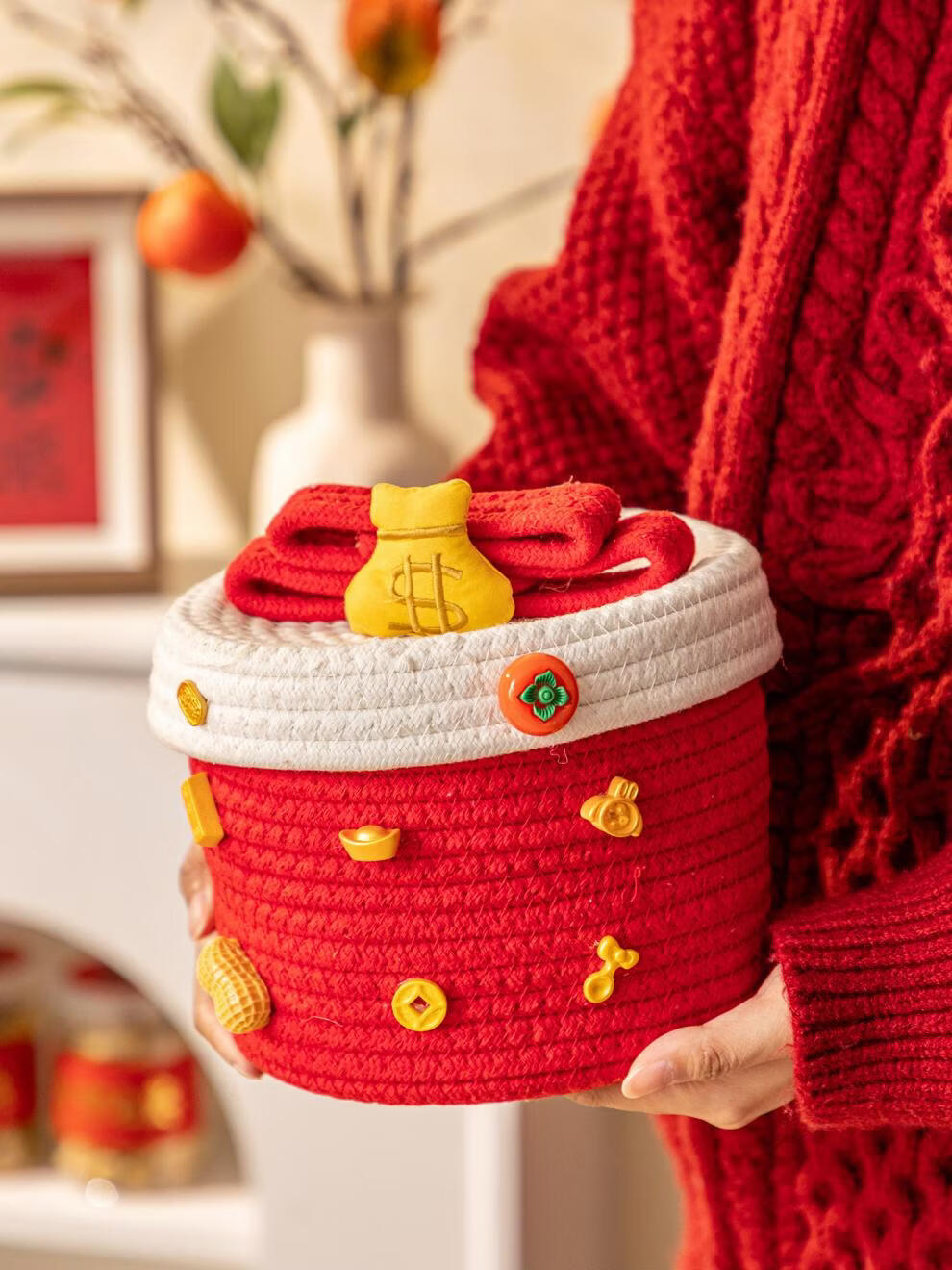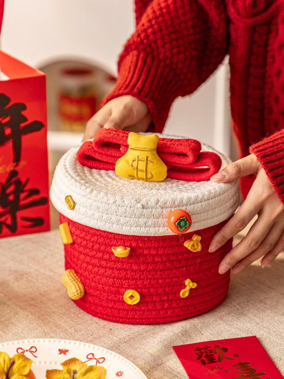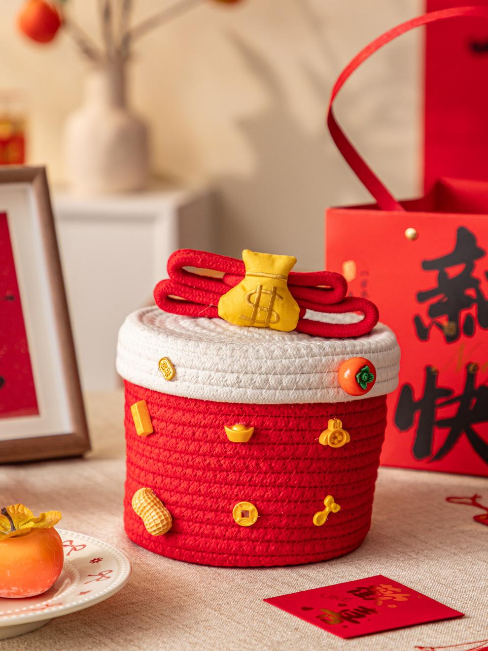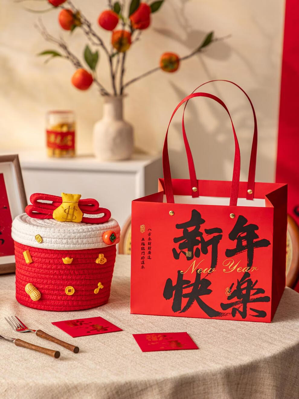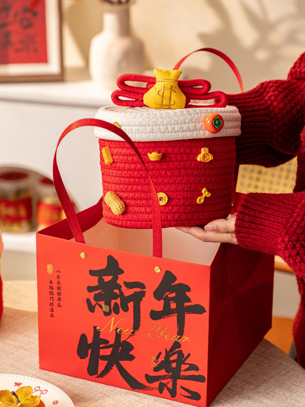 何佳功马年抱抱桶礼盒空盒 2026新款马年抱抱桶礼盒包装春节糖果特产年 蝴蝶结抱抱桶礼盒