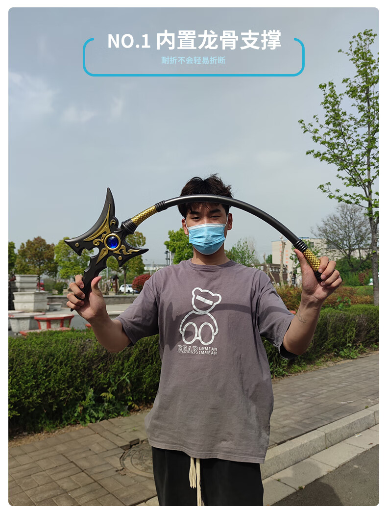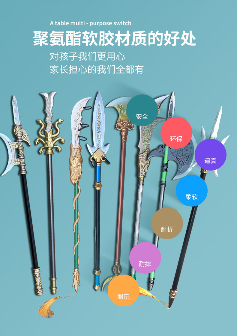 吕布的方天画戟冷兵器儿童玩具大号软胶材质青龙偃月刀关羽大刀PU 张辽战斧(100cm)
