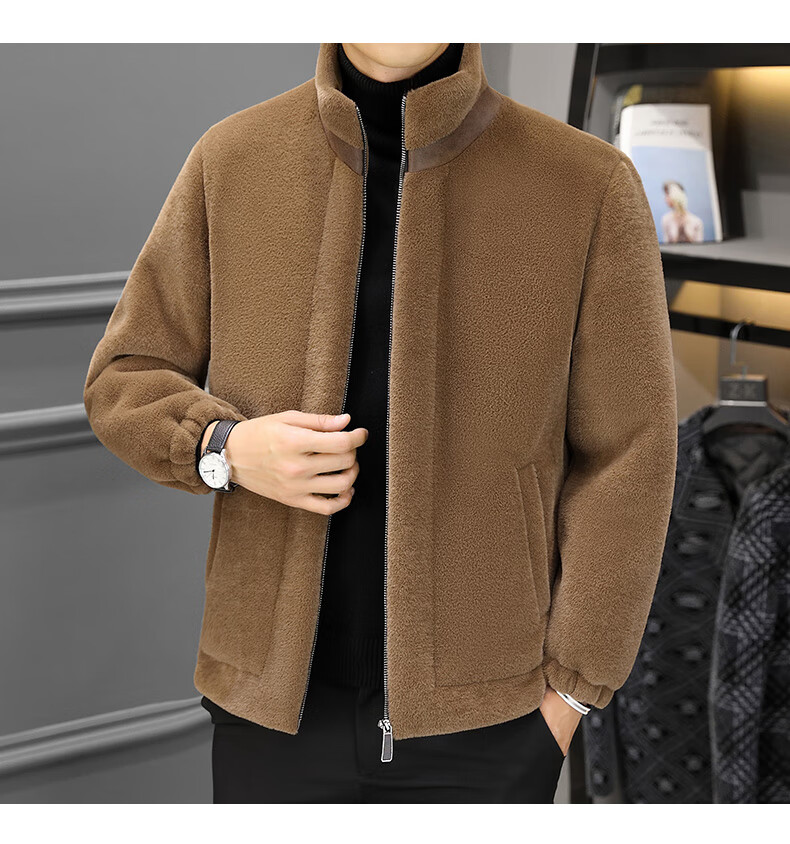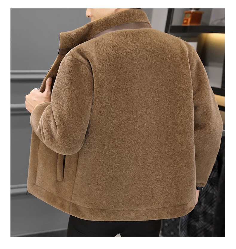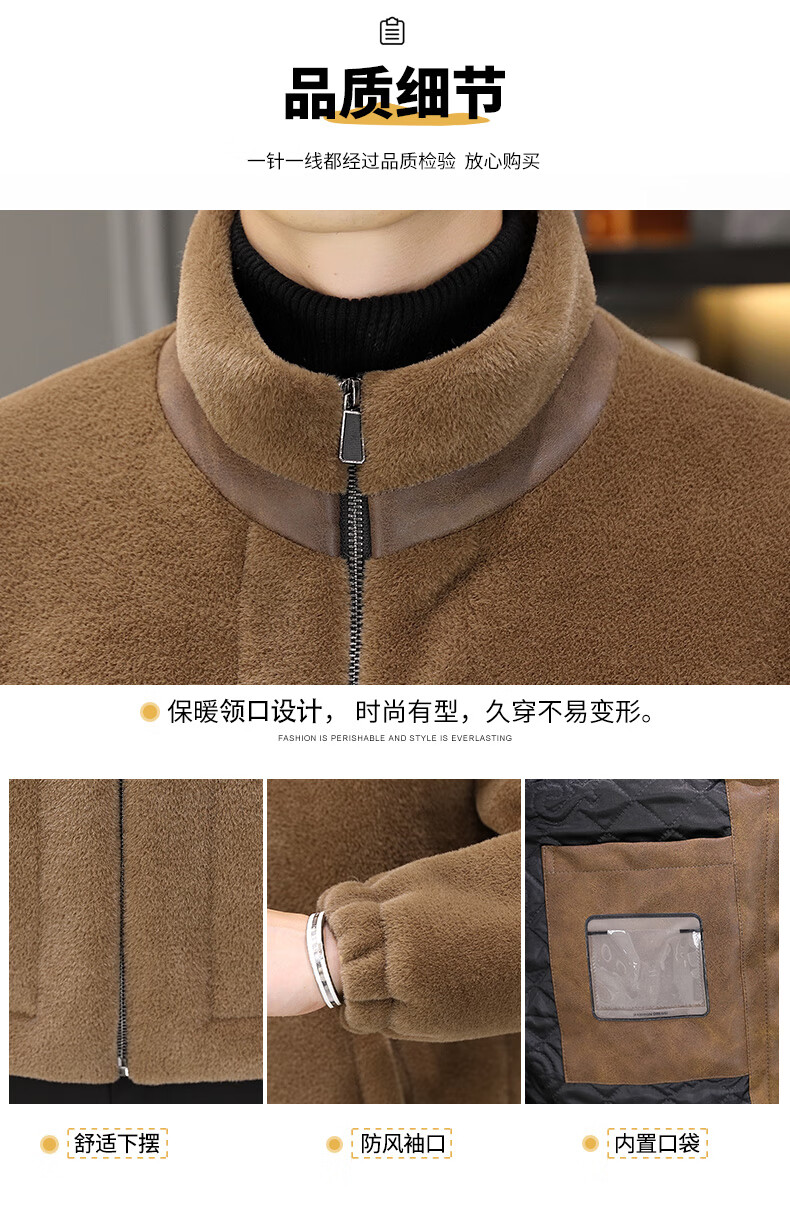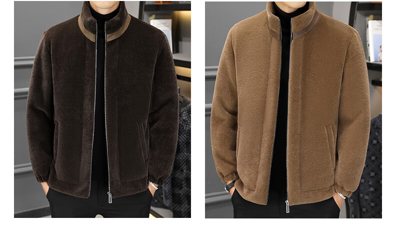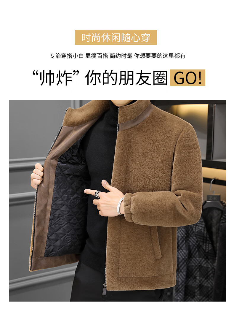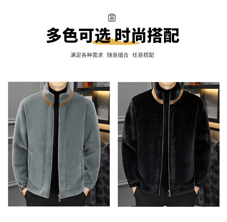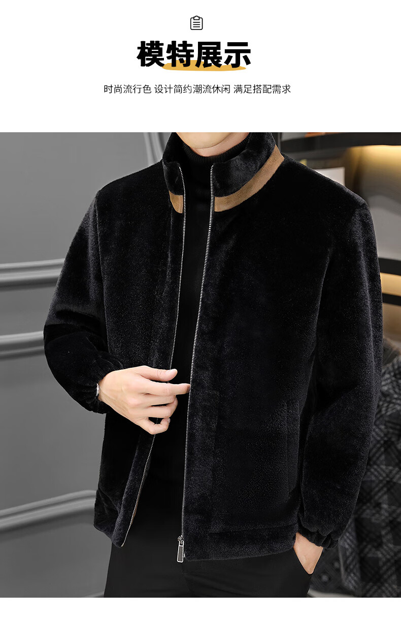 皮尔卡丹(pierre cardin)立领羊羔毛夹克男仿皮毛一体冬季韩版加厚颗粒羊剪绒二棉短款外套 黑色 M