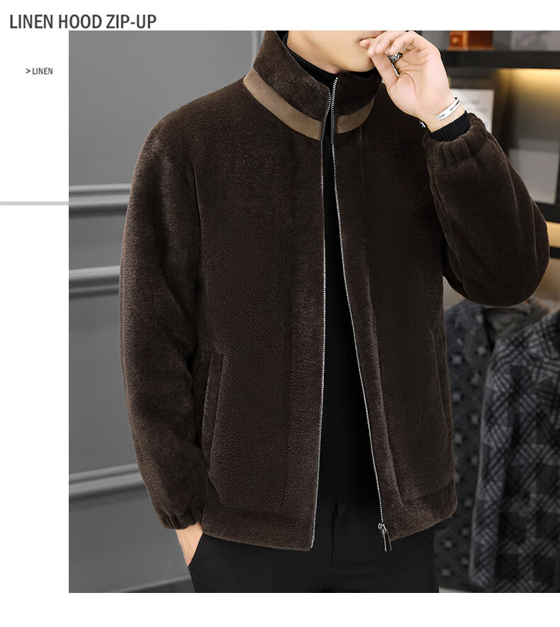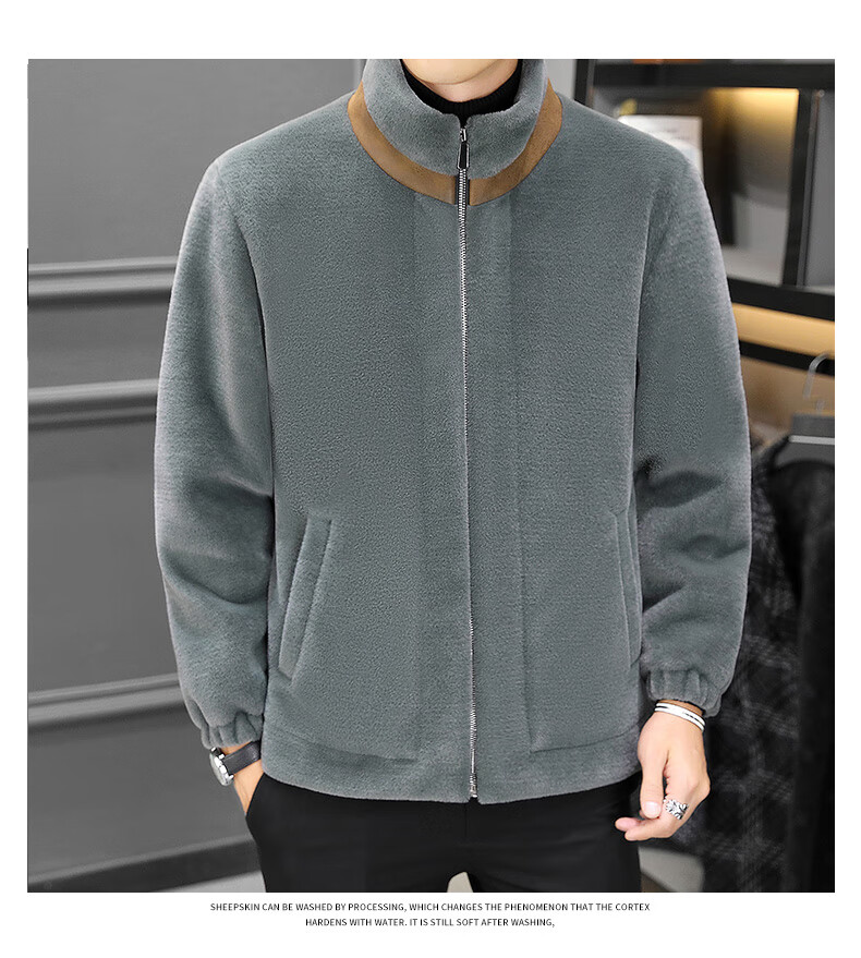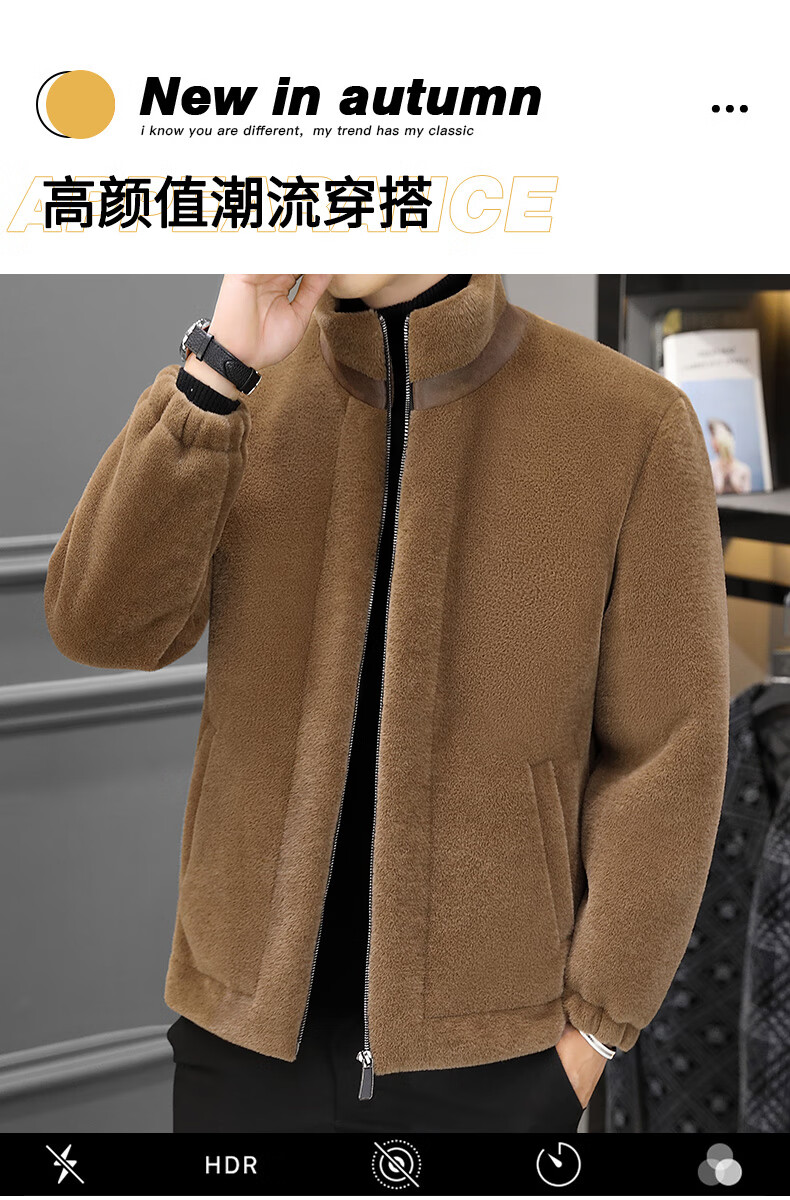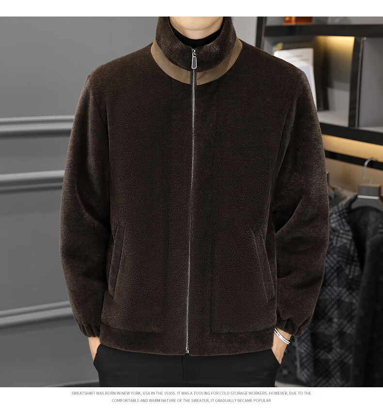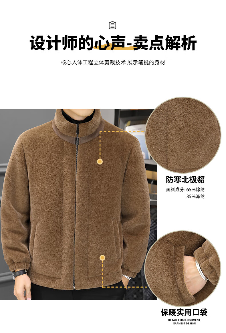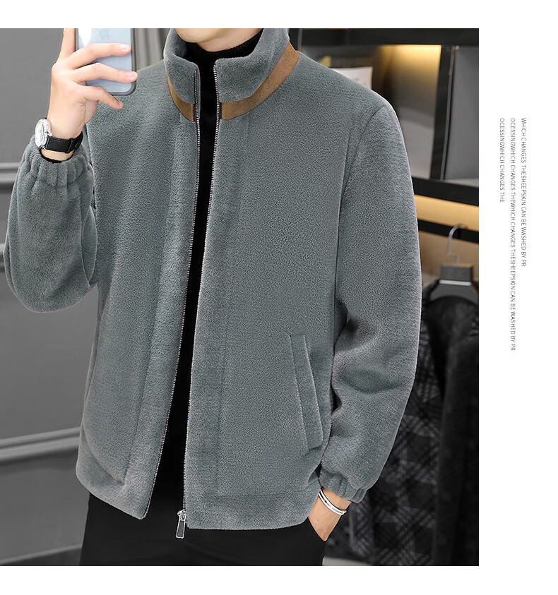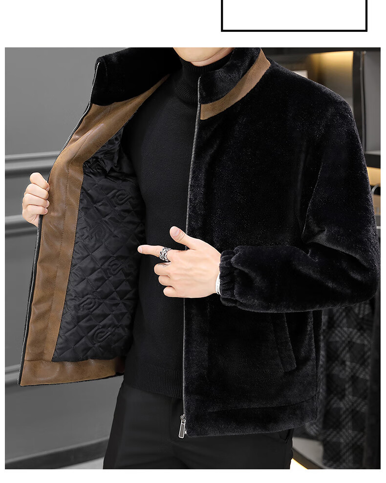 皮尔卡丹(pierre cardin)立领羊羔毛夹克男仿皮毛一体冬季韩版加厚颗粒羊剪绒二棉短款外套 黑色 M