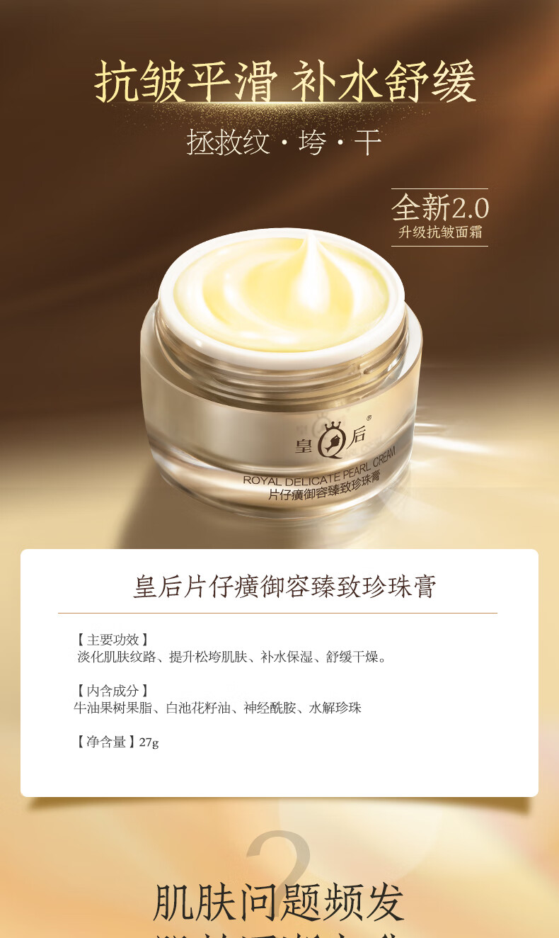 片仔癀皇后牌御容臻致珍珠膏新年礼物抗皱补水面霜27g保湿护肤品