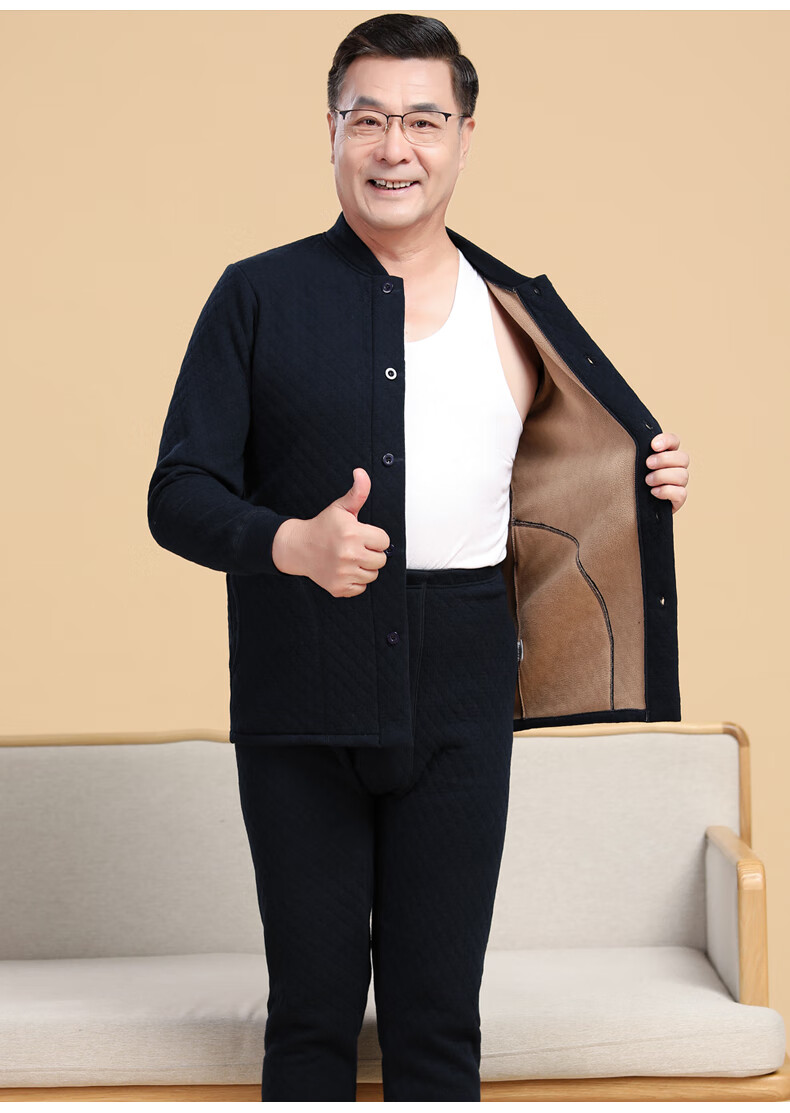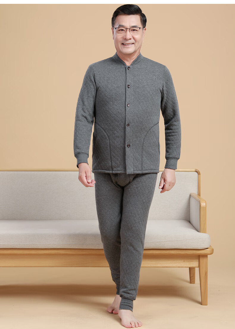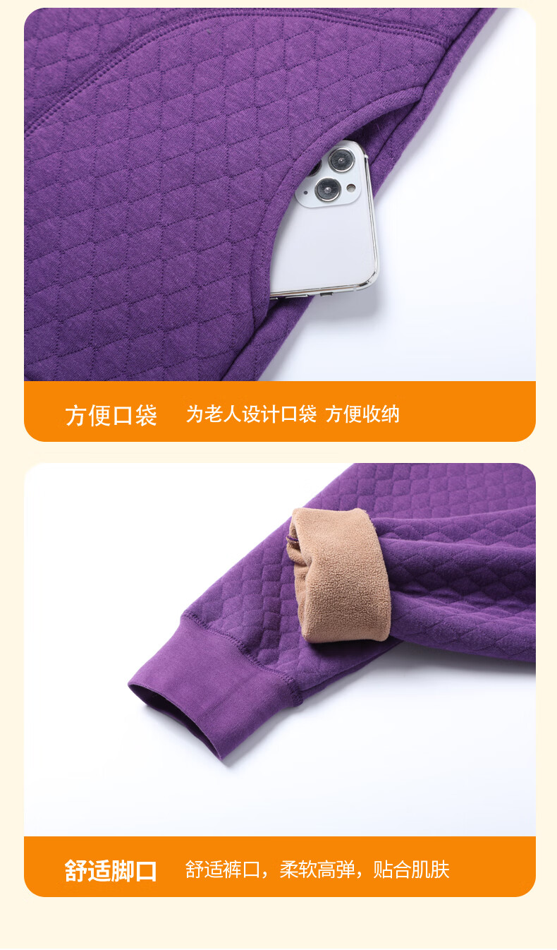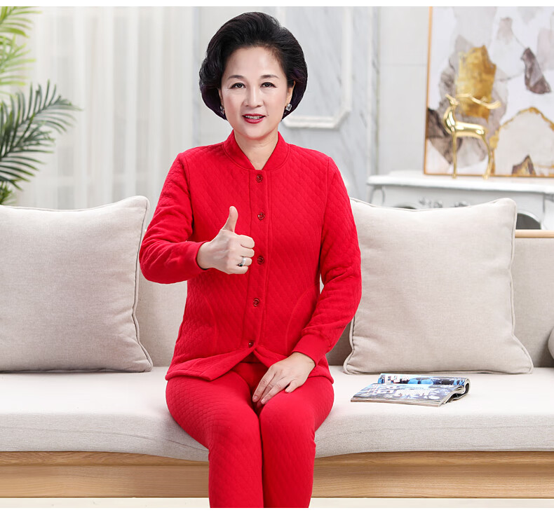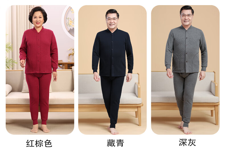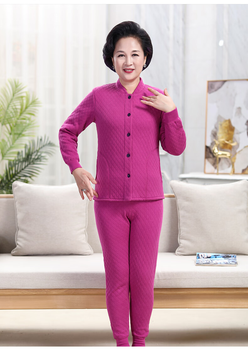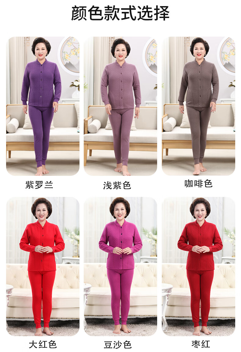 浪莎(LangSha)老年人加绒加厚保暖内衣女妈妈奶奶开衫开襟对开纯棉秋衣秋裤套装 女三层夹棉羊羔绒咖啡色(衣服+裤子) 4XL