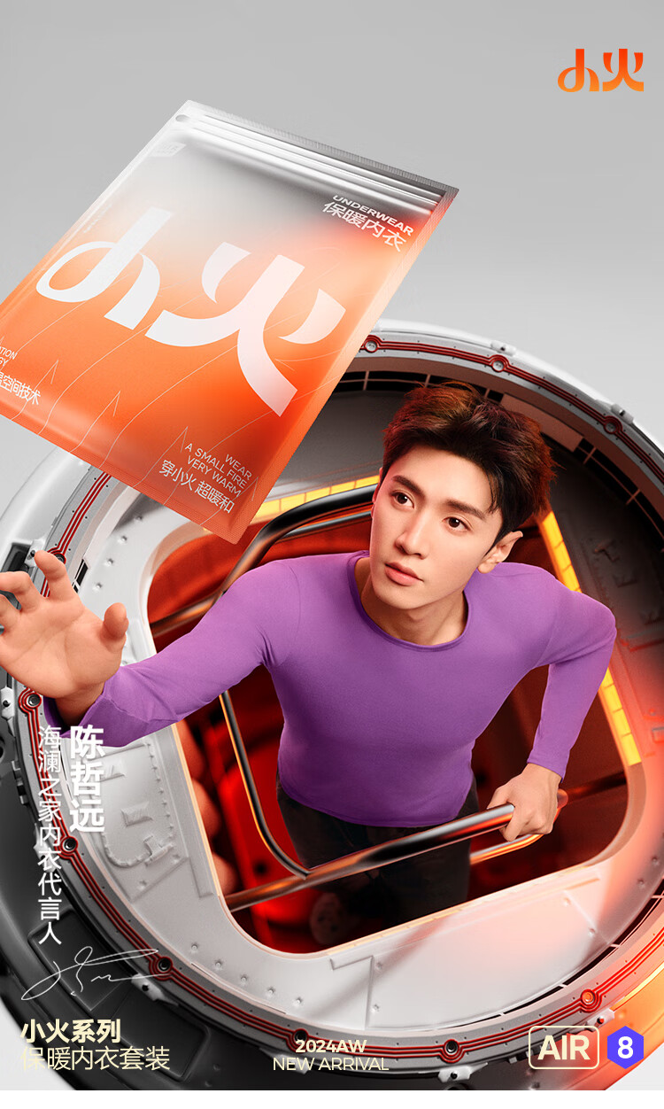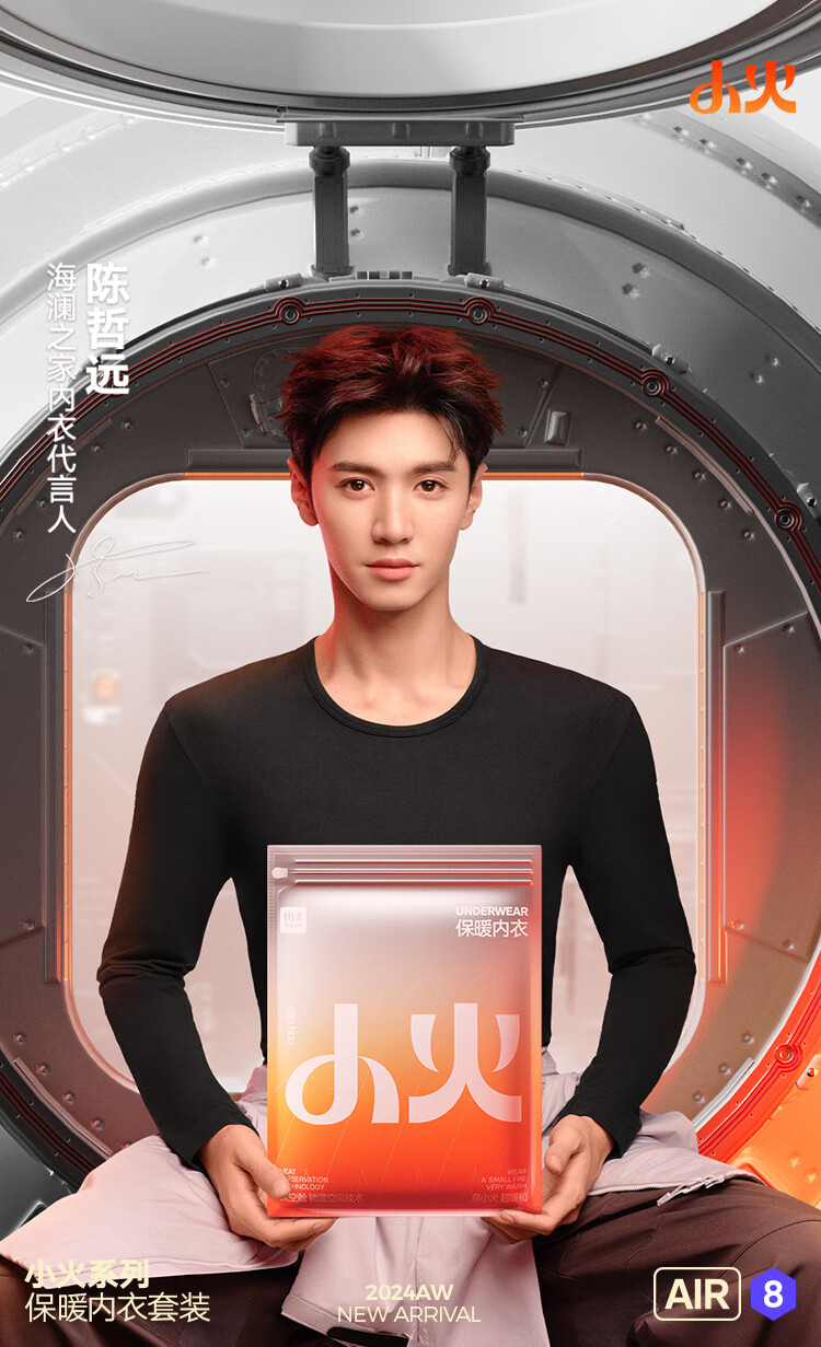 海澜之家【陈哲远同款】保暖内衣男230g双面绒抗菌发热贴片秋衣秋裤套装