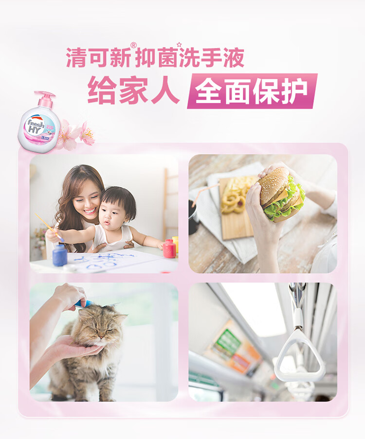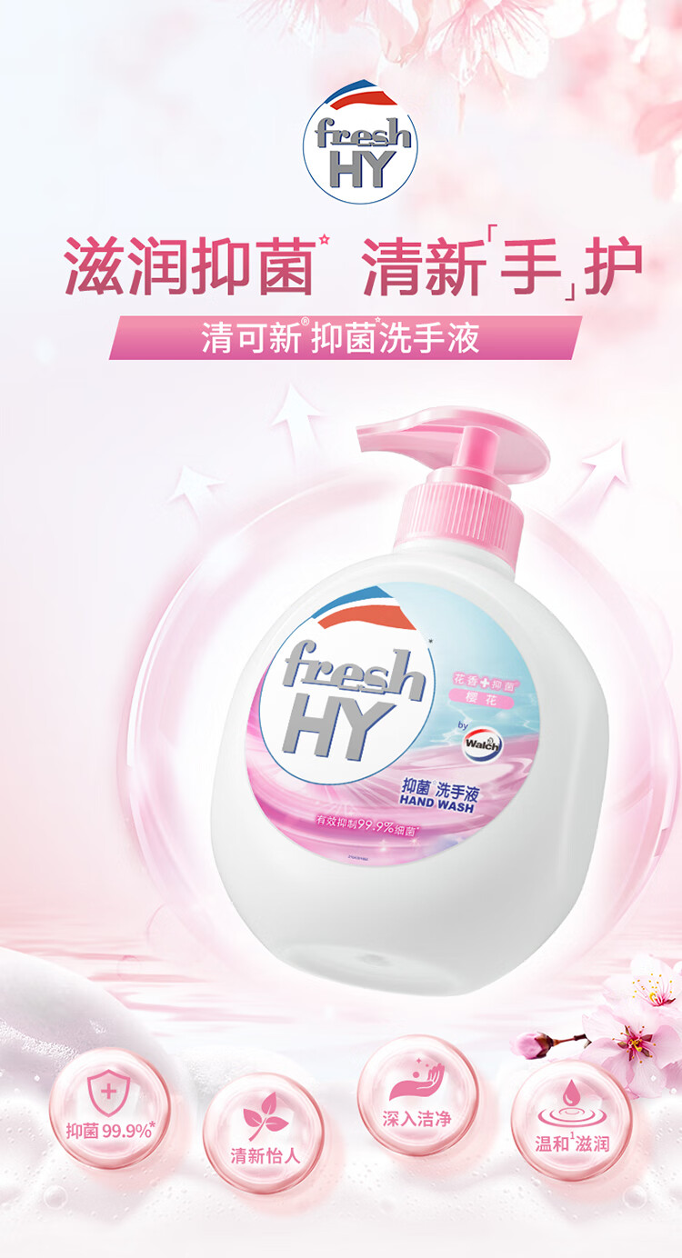 威露士清可新抑菌洗手液樱花525ml+525ml补充装替换 家庭儿童消毒护手