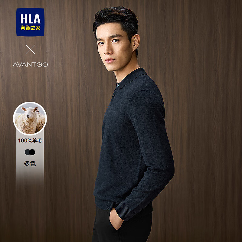海澜之家羊毛衫男轻商务经典系列翻领毛衣冬季男 藏青97 L 175/92A 推荐137~150斤