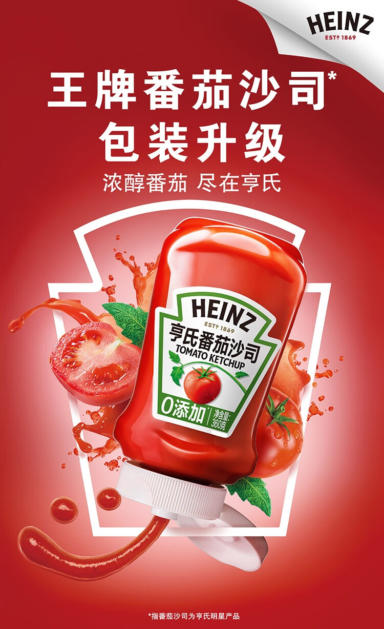 亨氏番茄酱 挤压瓶倒置装番茄沙司360g 家用意大利面披萨薯条蘸酱