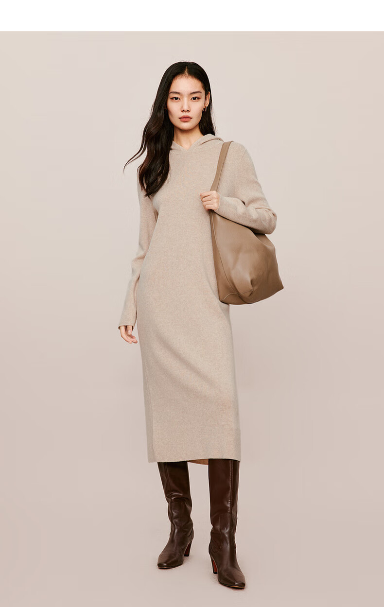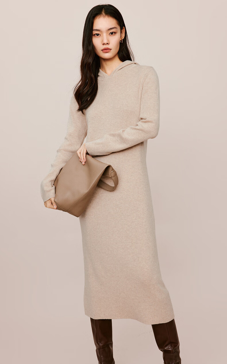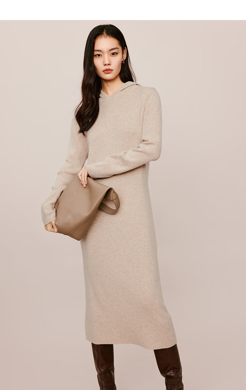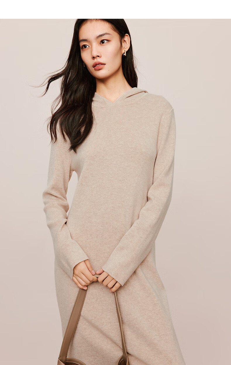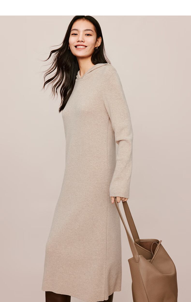 伊芙丽(eifini)蒋欣代言戴帽百搭可机洗羊毛连衣裙冬装新款气质高级感茶歇裙子 杏色 S 155/80A