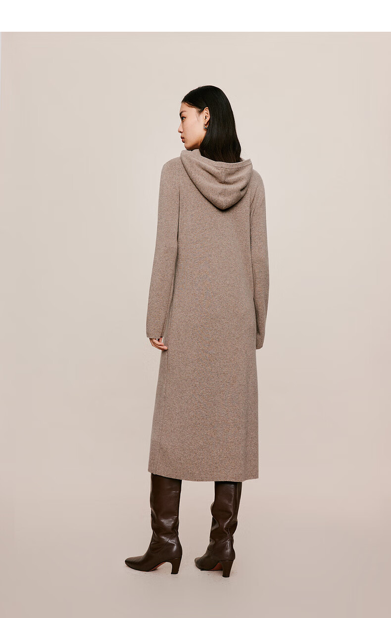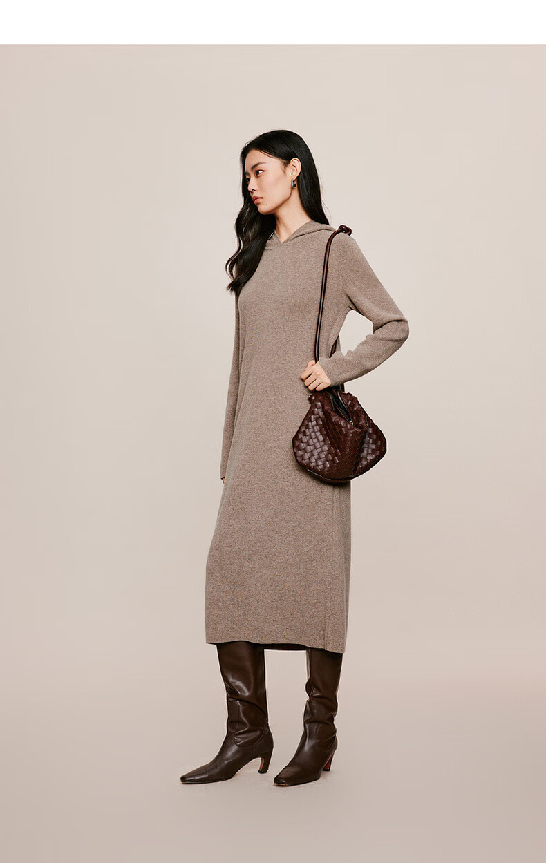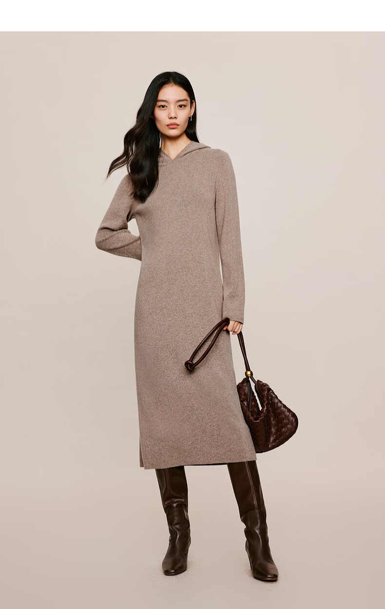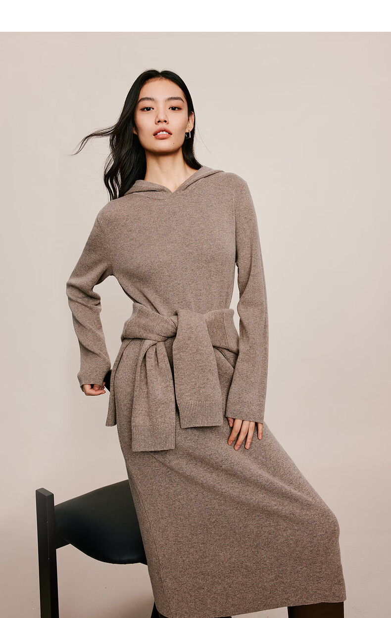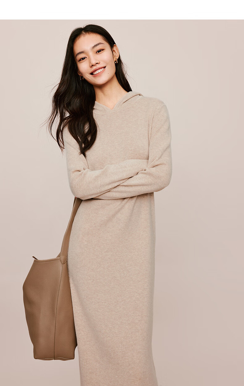 伊芙丽(eifini)蒋欣代言戴帽百搭可机洗羊毛连衣裙冬装新款气质高级感茶歇裙子 杏色 S 155/80A