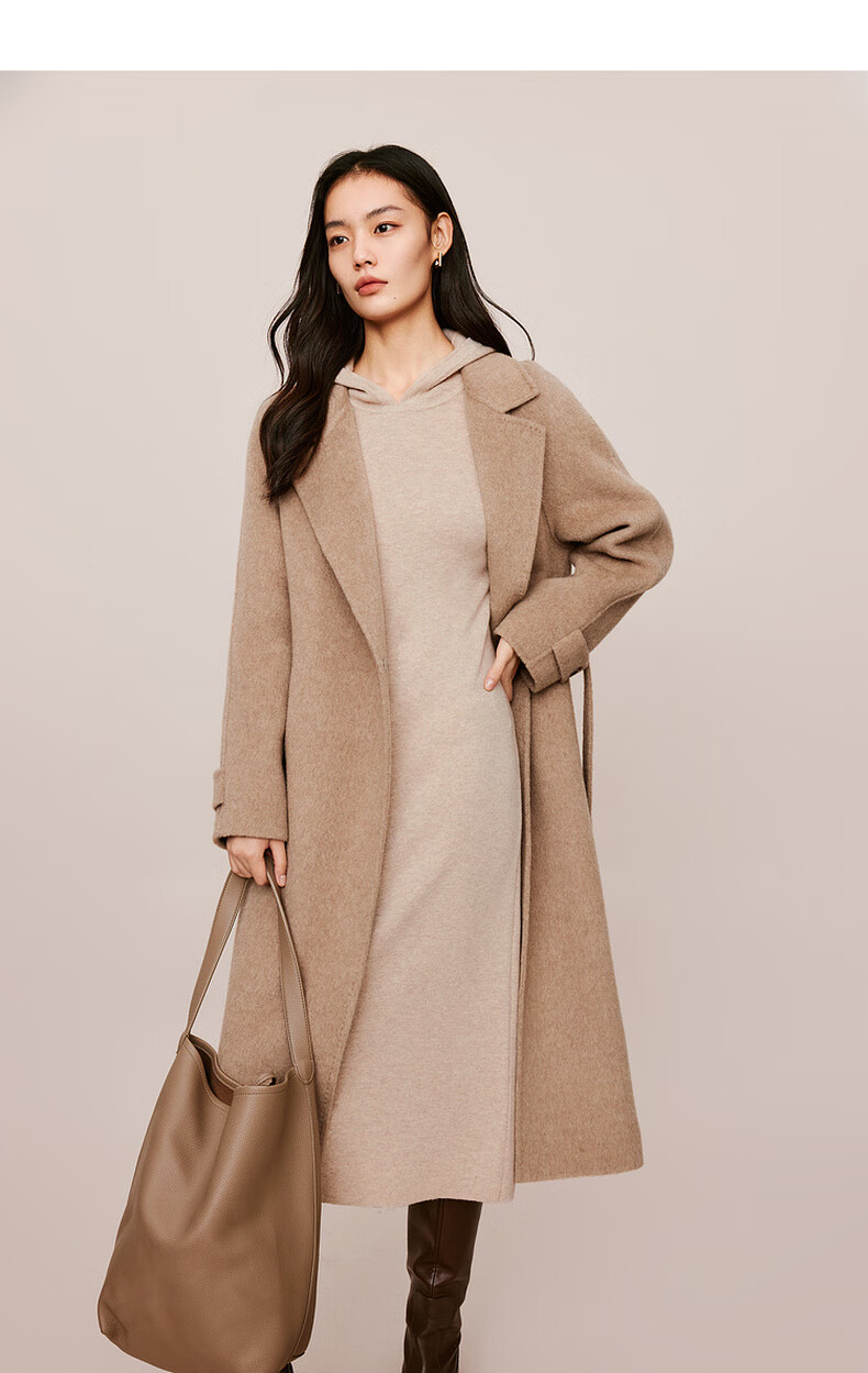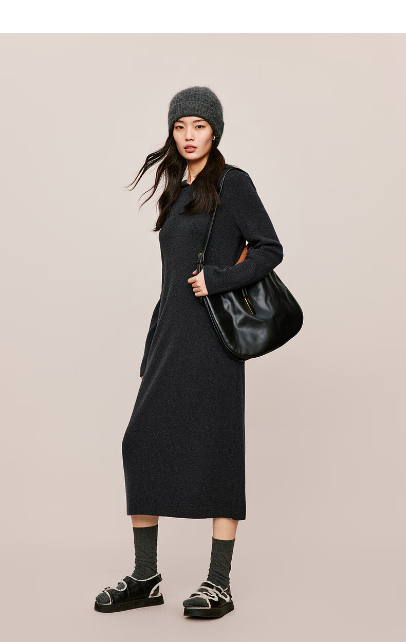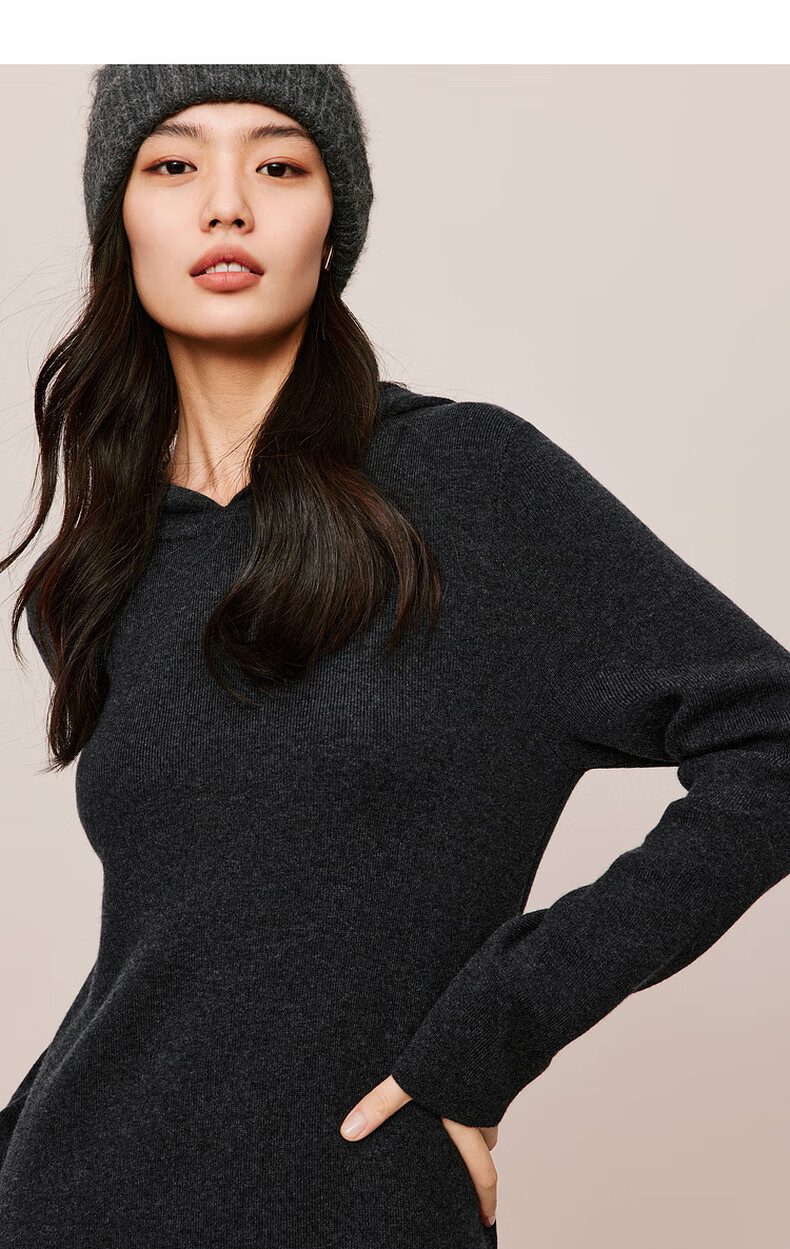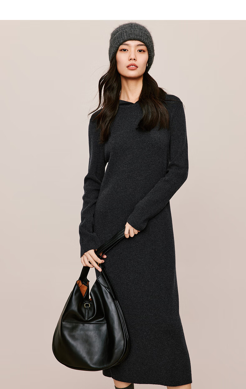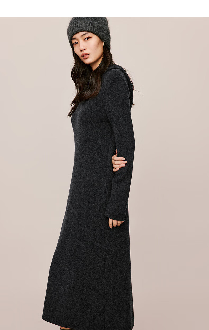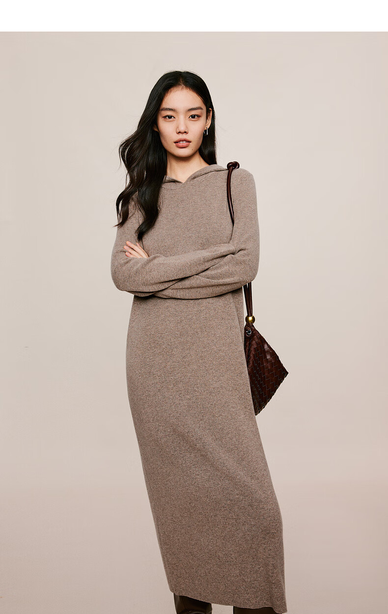 伊芙丽(eifini)蒋欣代言戴帽百搭可机洗羊毛连衣裙冬装新款气质高级感茶歇裙子 杏色 S 155/80A