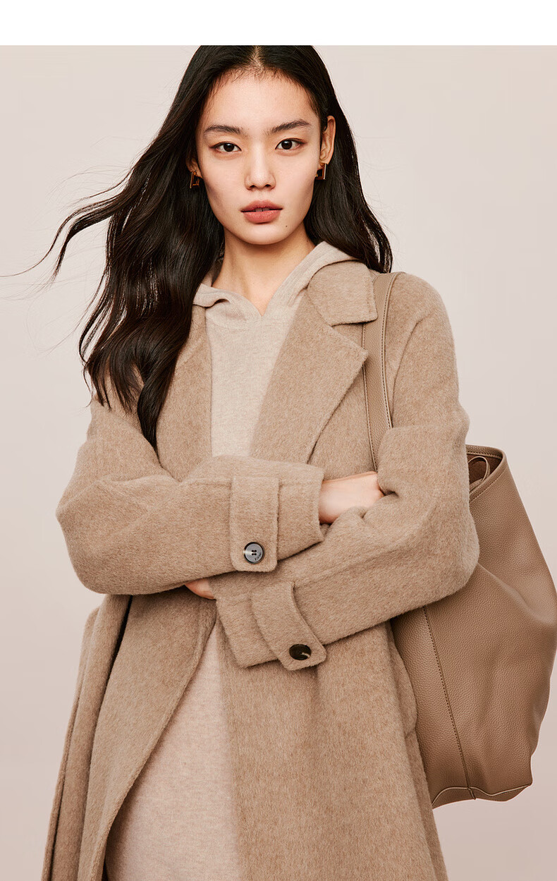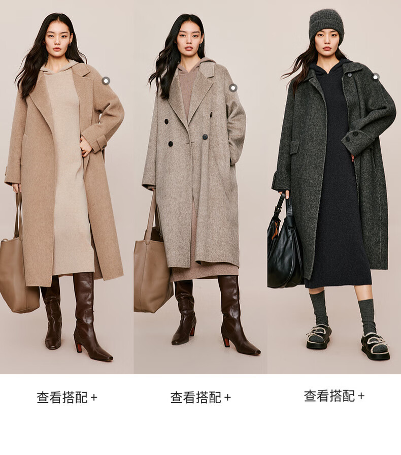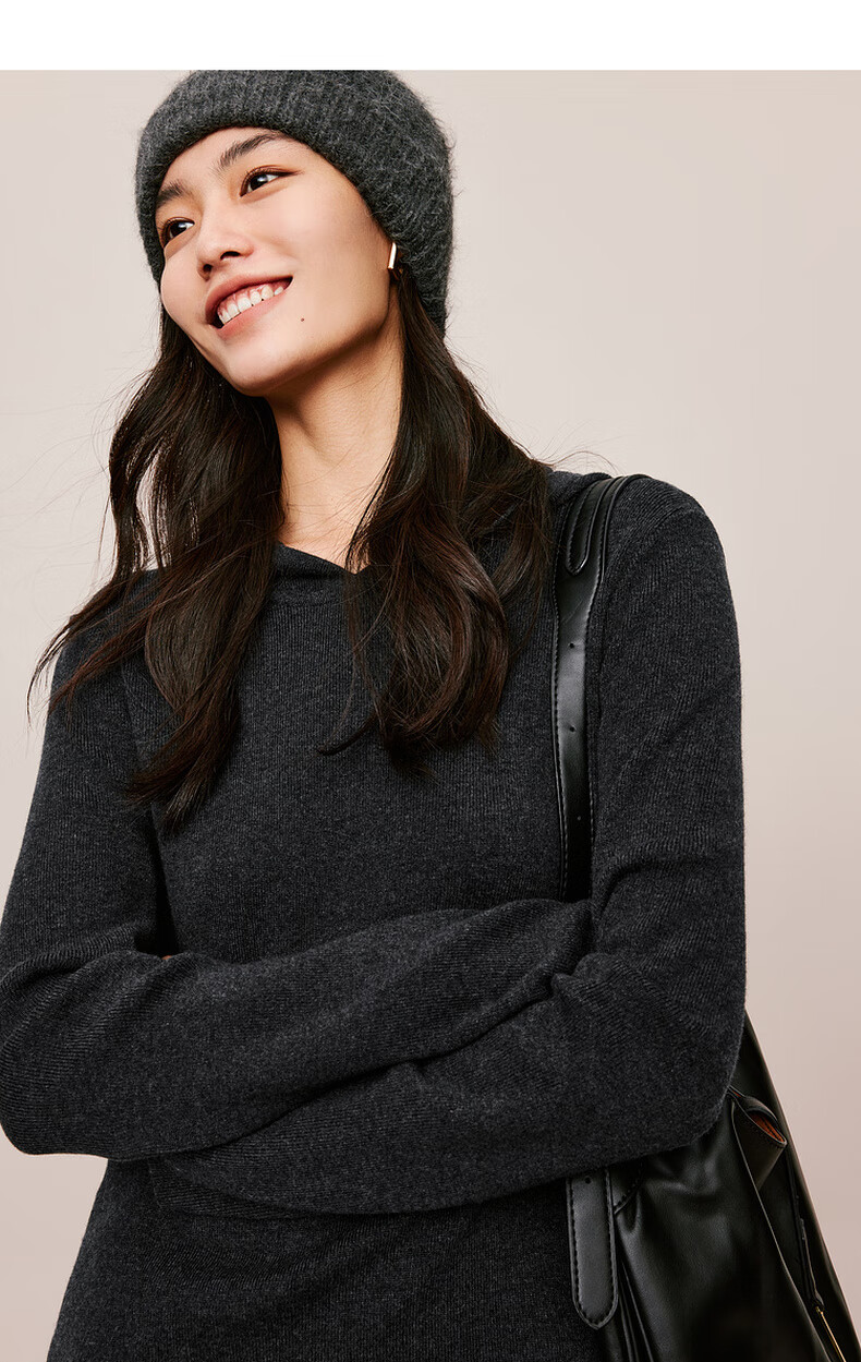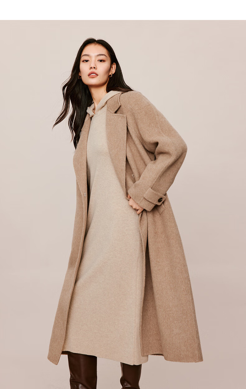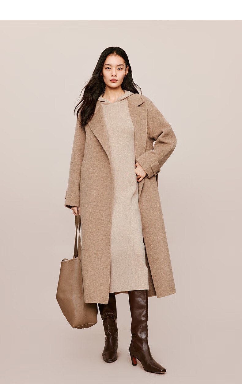 伊芙丽(eifini)蒋欣代言戴帽百搭可机洗羊毛连衣裙冬装新款气质高级感茶歇裙子 杏色 S 155/80A