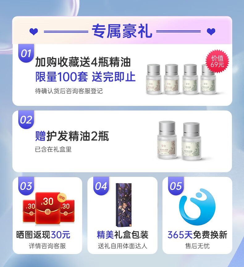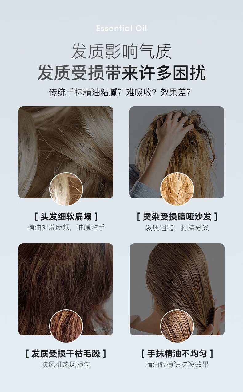 GX·Diffuser谷心护发精油梳直发梳负离子防毛躁染烫修复养护发精油导入梳子送妈妈女友老婆生日礼物新年礼物 护发精油【4支装】