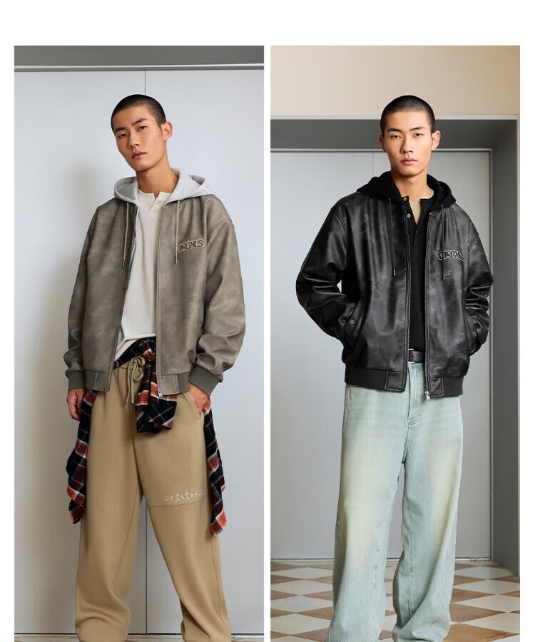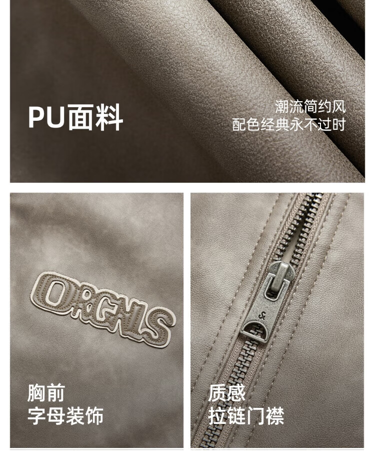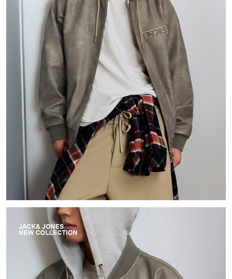 杰克·琼斯(JACK&JONES)25年男装秋季PU夹克棒球服宽松字母仿皮衣外套男可拆卸连帽上衣 E44黑砂色 M (175)