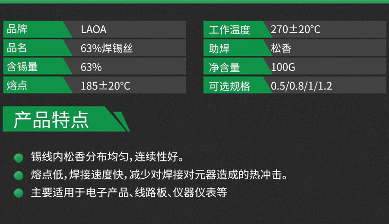 LAOA(LAOA)高纯度免清洗焊锡丝含松香锡条高纯度焊丝维修环保锡线 2.0MM/400g(单个)