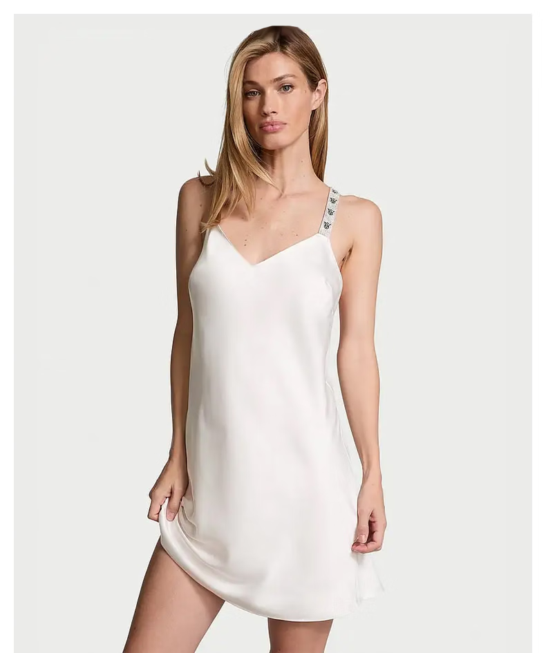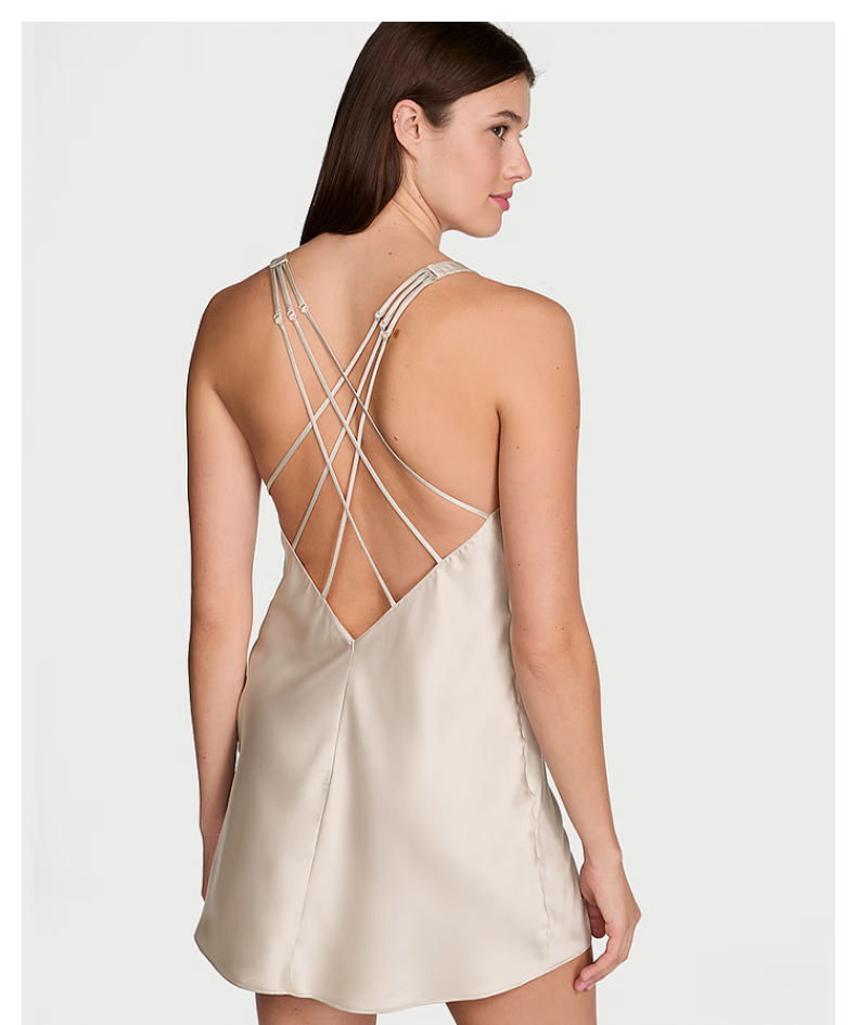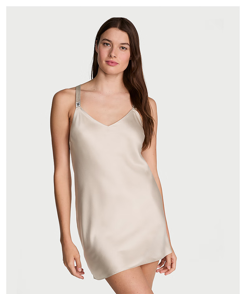 维多利亚的秘密 维密 水钻肩带性感美背缎面吊带短款睡裙女送礼送女友 34H5浅焦米色 11254312 S