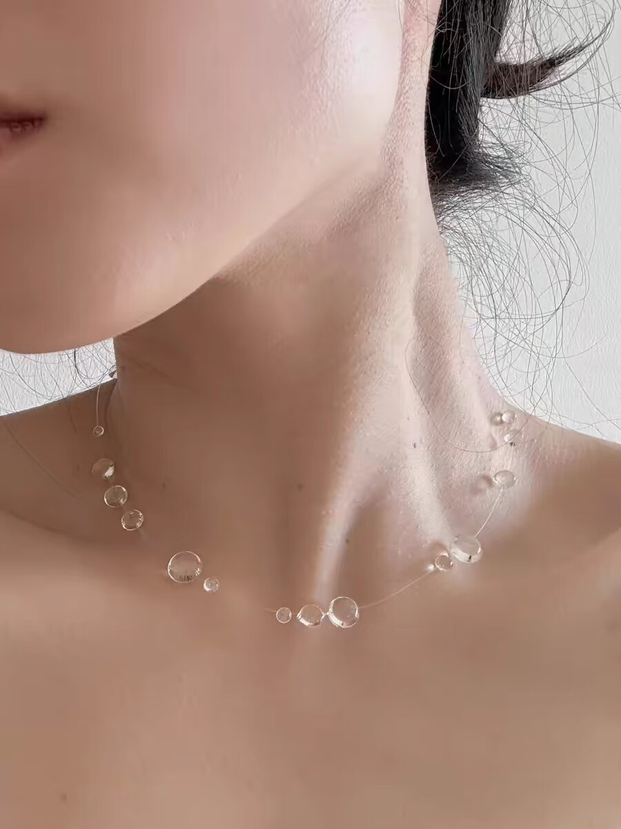 早纪(ZAOJI)【清晨露珠】自制冰透露珠项链小众设计极简风感水滴耳环配饰 双层露珠流苏耳环