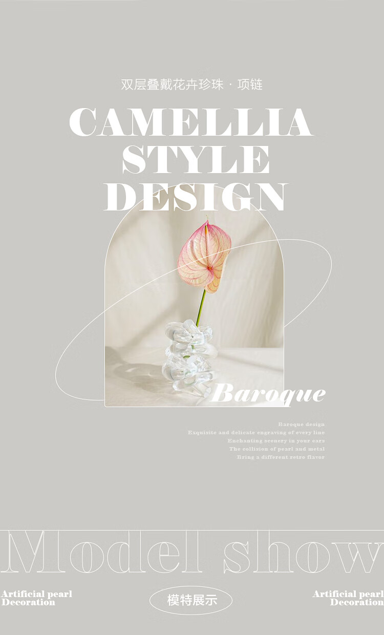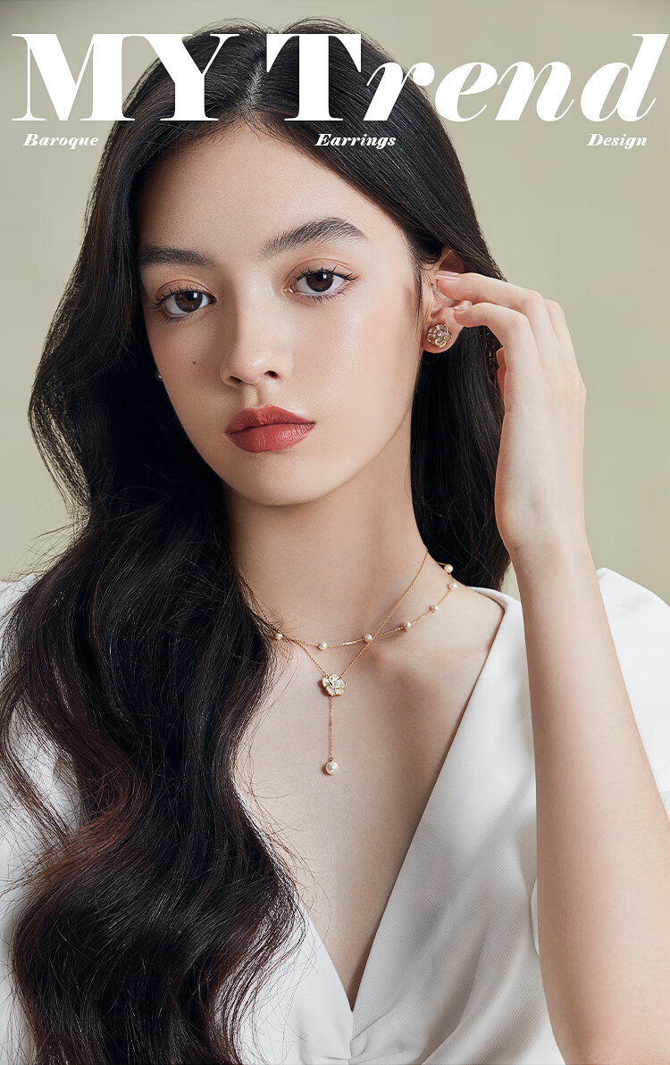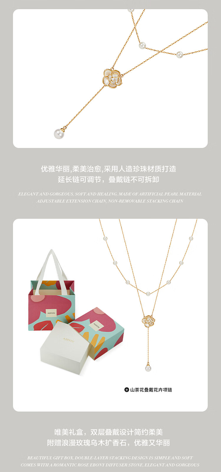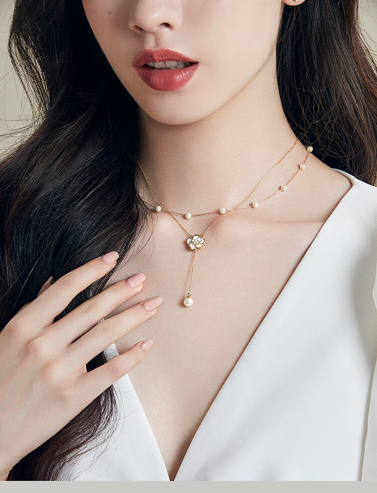 AJIDOU阿吉豆项链女山茶花仿珍珠叠戴锁骨链轻奢高级感毛衣链新年礼物