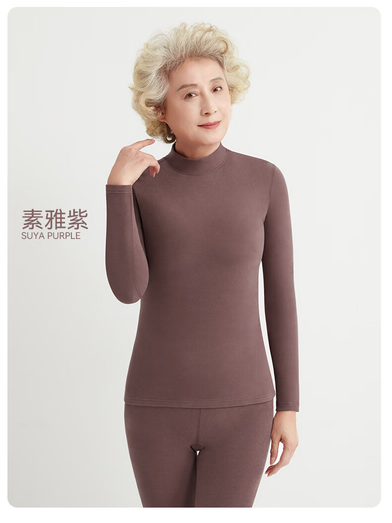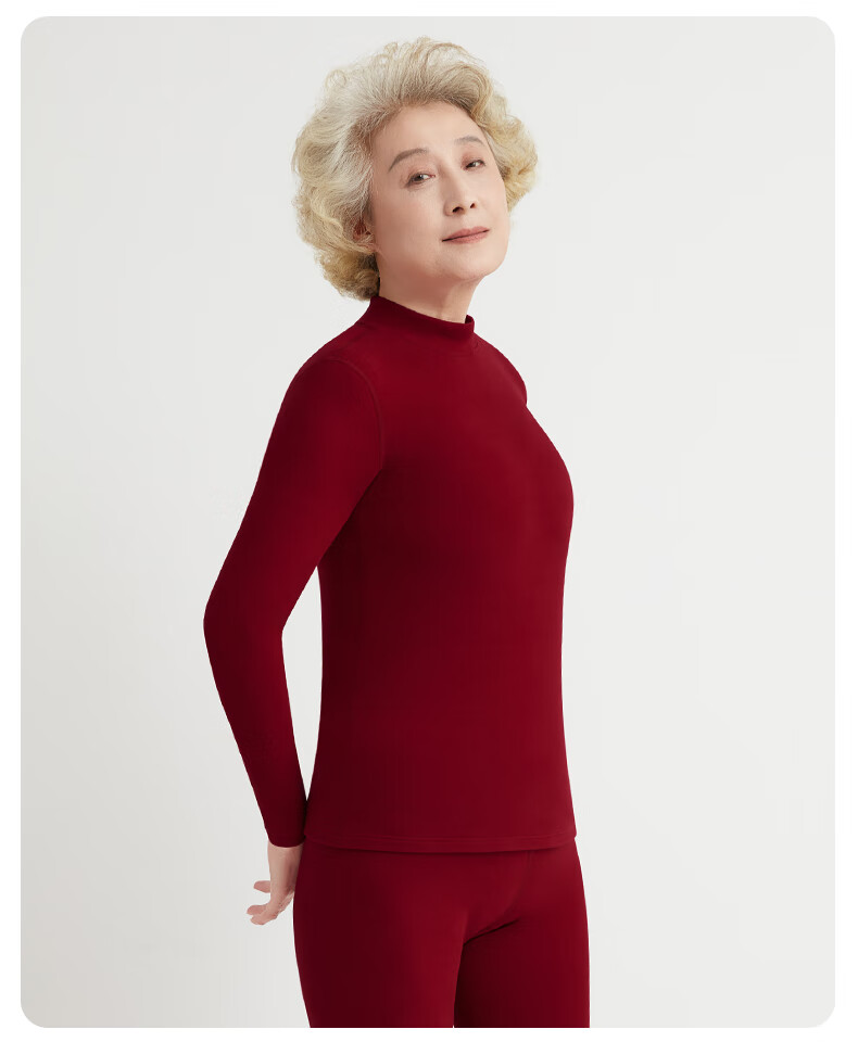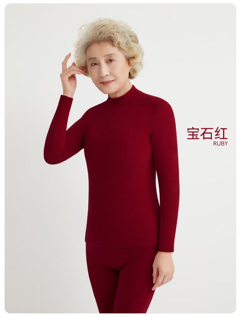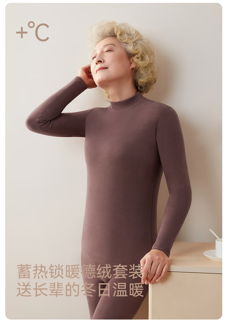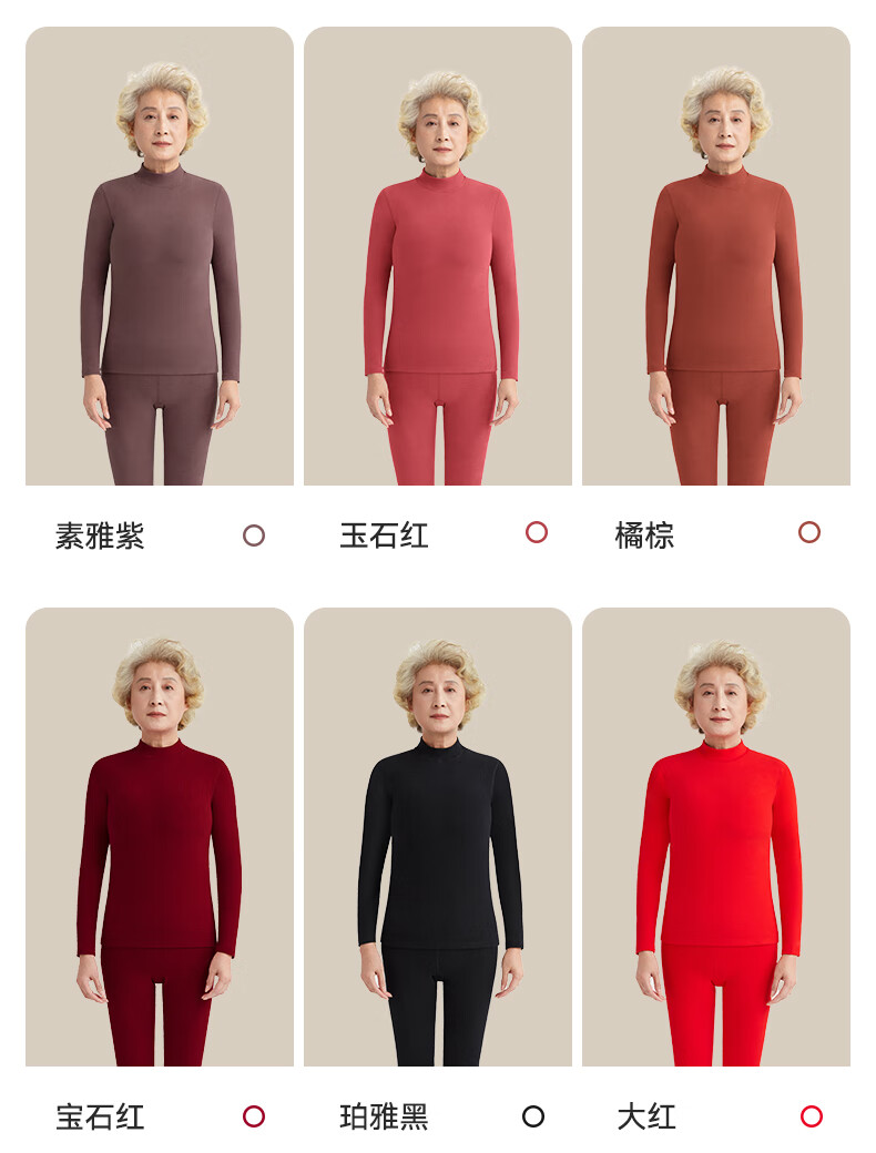 卡森兰中老年人德绒保暖内衣女套装加绒加厚妈妈本命年红色女士秋衣秋裤