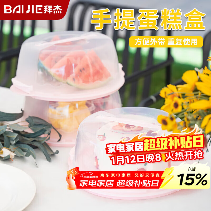 拜杰生日蛋糕包装盒8寸可重复家用蛋糕包装盒手提打包盒水果保存盒